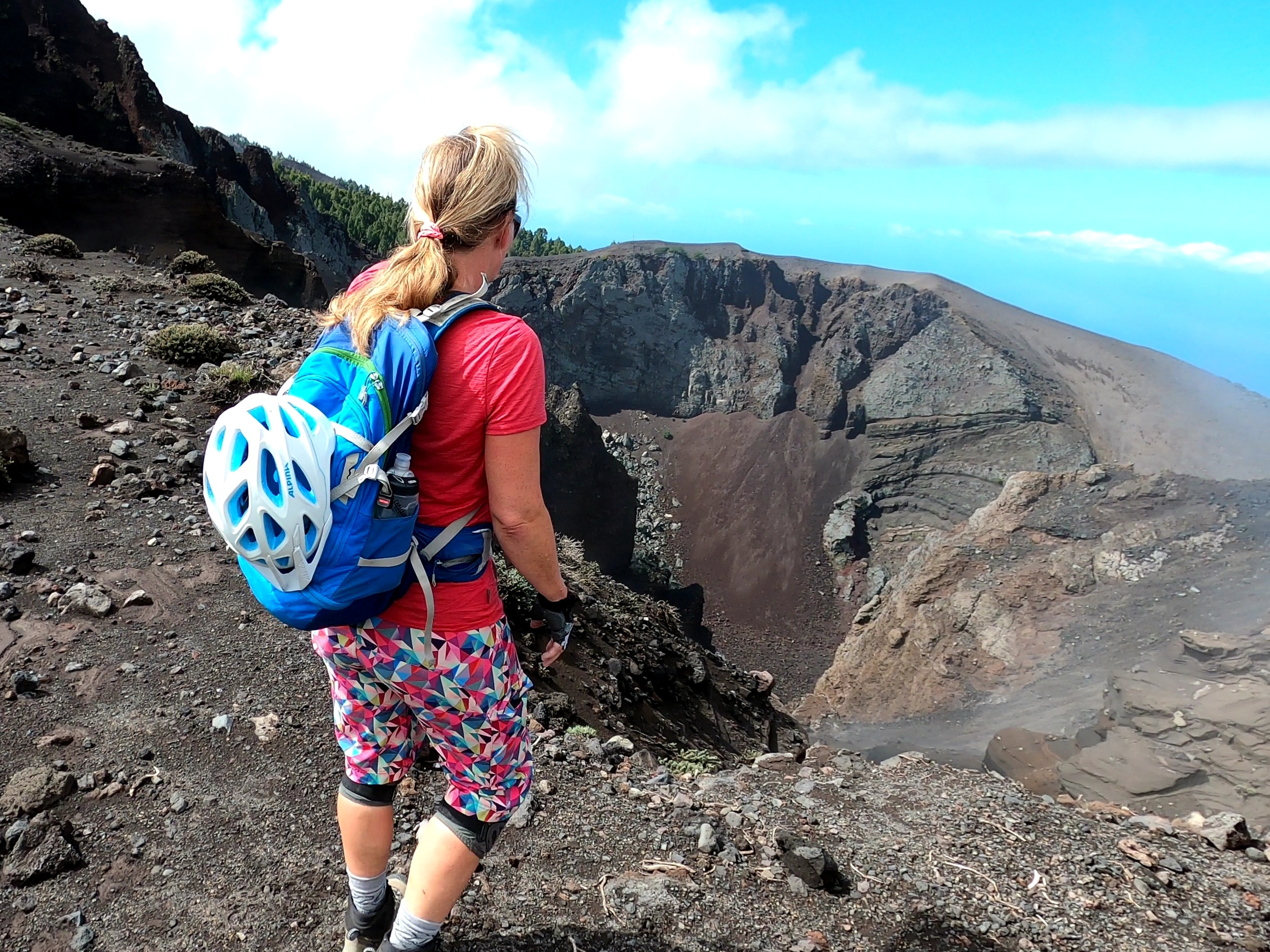 Kurz unterhalb des Gipfels lass ich dann auch mein Radl stehen, ganz oben auf der "Ruta de los Volcanos" soll man lieber zu Fuß rollen, sagen die Ranger. Dann mach ich's eben so.