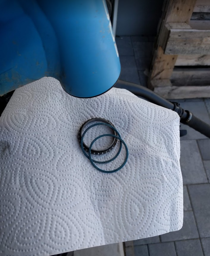 Gabel raus, Lager von unten beguckt, völlig dreckig. Nimm ich ein Küchenkrepp, oder wie ihr das auch nennt, will das Lager raus nehmen zum säubern, denn die sitzen ja eigentlich relativ locker drin, da passiert es: