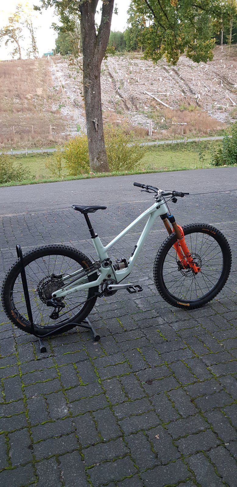 Kurze Eckdaten: Größe L (bei 1,72m) -2° Angleset, 160mm Fox 36, cascadelink, Fox DHX, WTB CZR i30 Laufradsatz und Doubledown Bereifung.