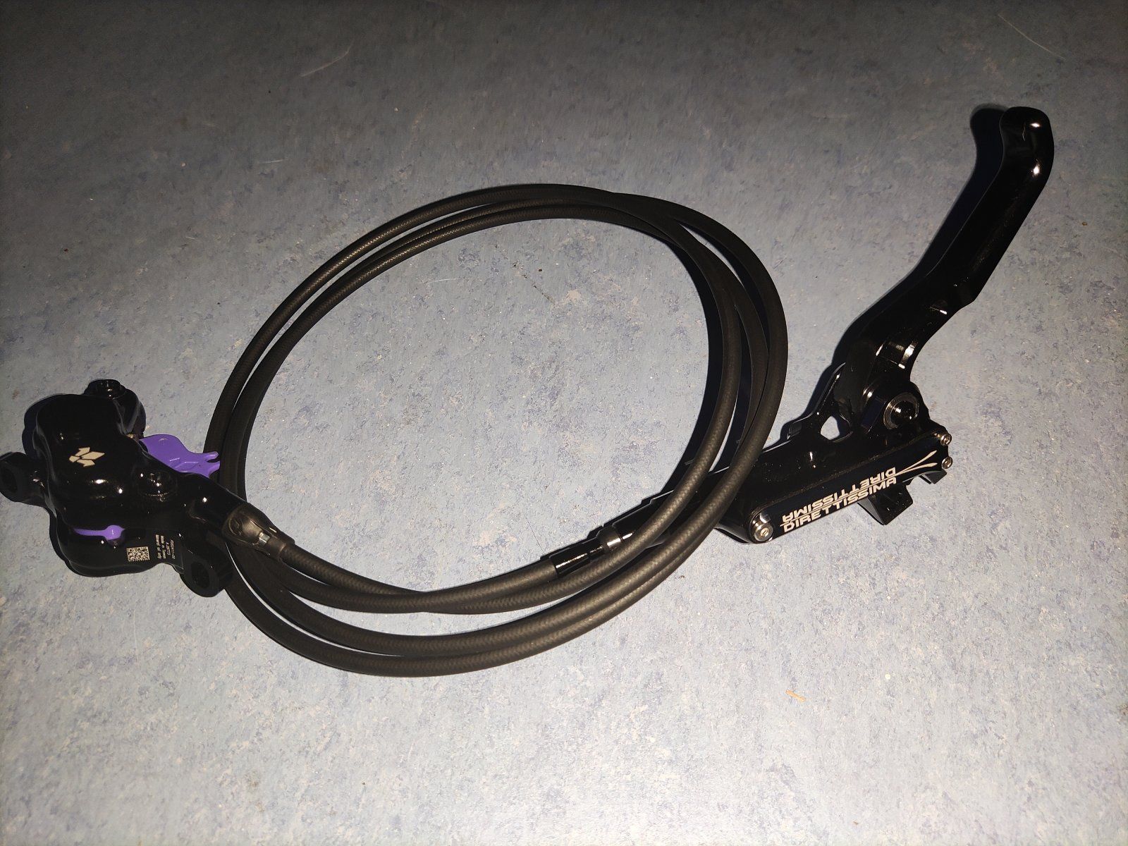 So. Bremse sollte eingebremst sein. Das Schleifbild erstreckt sich regelmäßig über den gesamten Reibring in voller Höhe. Der Druckpunkt ist sehr elastisch aber die Bremse dadurch sehr gut dosierbar, wie ich finde. Es ist schwierig das zu vergleichen, da ich die Zahlen nicht kenne aber ich würde sagen, dass die DRT-V4 mit 203mm so stark ist wie die reine DRT mit 223mm, wie ich sie auch schon gefahren bin.