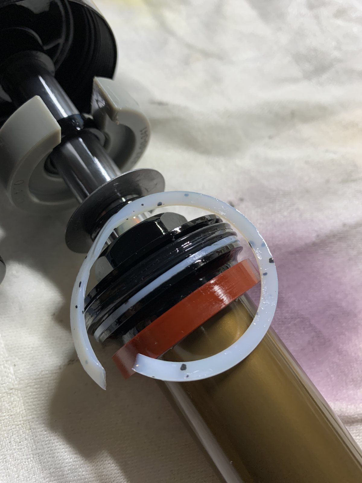Ich habe gestern den hellgrauen Spacer 0,4 in meinen neuen DPX2 vom Occam M10 gewechselt, da ich auch mehr als 100 kg wiege (Herstellerempfehlung Occam). Mir ist es passiert, dass da noch relativ viel Druck drauf war. Beim Aufdrehen ist die Hülse dann ganz nach hinten gegangen. Den Spacer habe ich im eingebauten Zustand kaum reinbekommen, den muss man ganz schön drücken. Wollte wieder zusammenbauen. Ich schau in den Dämpfer und sehe, dass sich der X-Gummiring mit den Plastikringen rausgedreht hat (wahrscheinlich durch den harten Rückstoß). Gut, Dämpfer ausgebaut, diese weißen Plastikringe um den Gummiring wieder ausgerichtet. Alles wieder eingebaut, hoffe, dass es in Ordnung ist. Jetzt habe ich gesehen (nachdem ich mir einige Videos zum Service angeschaut habe), dass ich diese Fox-Fluid noch 2 ml nachfüllen muss bzw. die Dichtungen und Innenwand wieder einstreichen, ist bei der Aktion ausgelaufen! Also muss ich es wieder ausbauen. Dabei werde ich auch noch mal diese x-Dichtung prüfen.