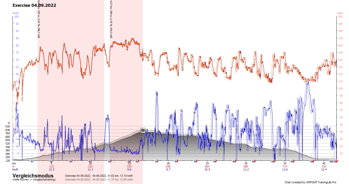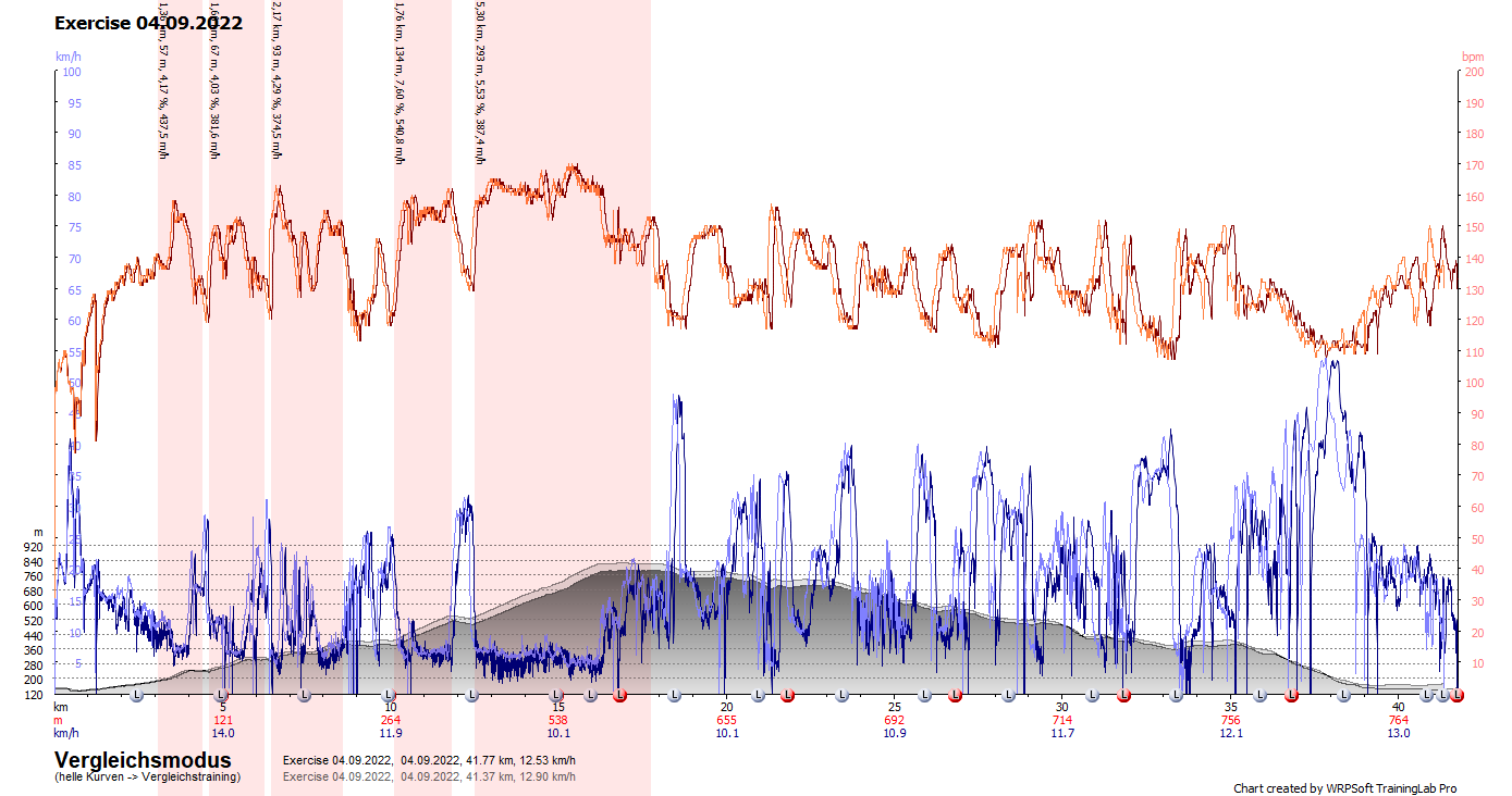 Das Ergebnis erstaunt mich dann doch etwas. Ich hatte das anders in Erinnerung und war immer ein lauter Verfechter der 'ohne SPD-Sensor ist für den Ar&$%' These. Das sehe ich seit heute deutlich differenzierter, denn auch wenn es bei den SPD-Werten Abweichungen gibt, könnte ich jetzt nicht sagen, welche von beiden Kurven die Akkuratere ist.