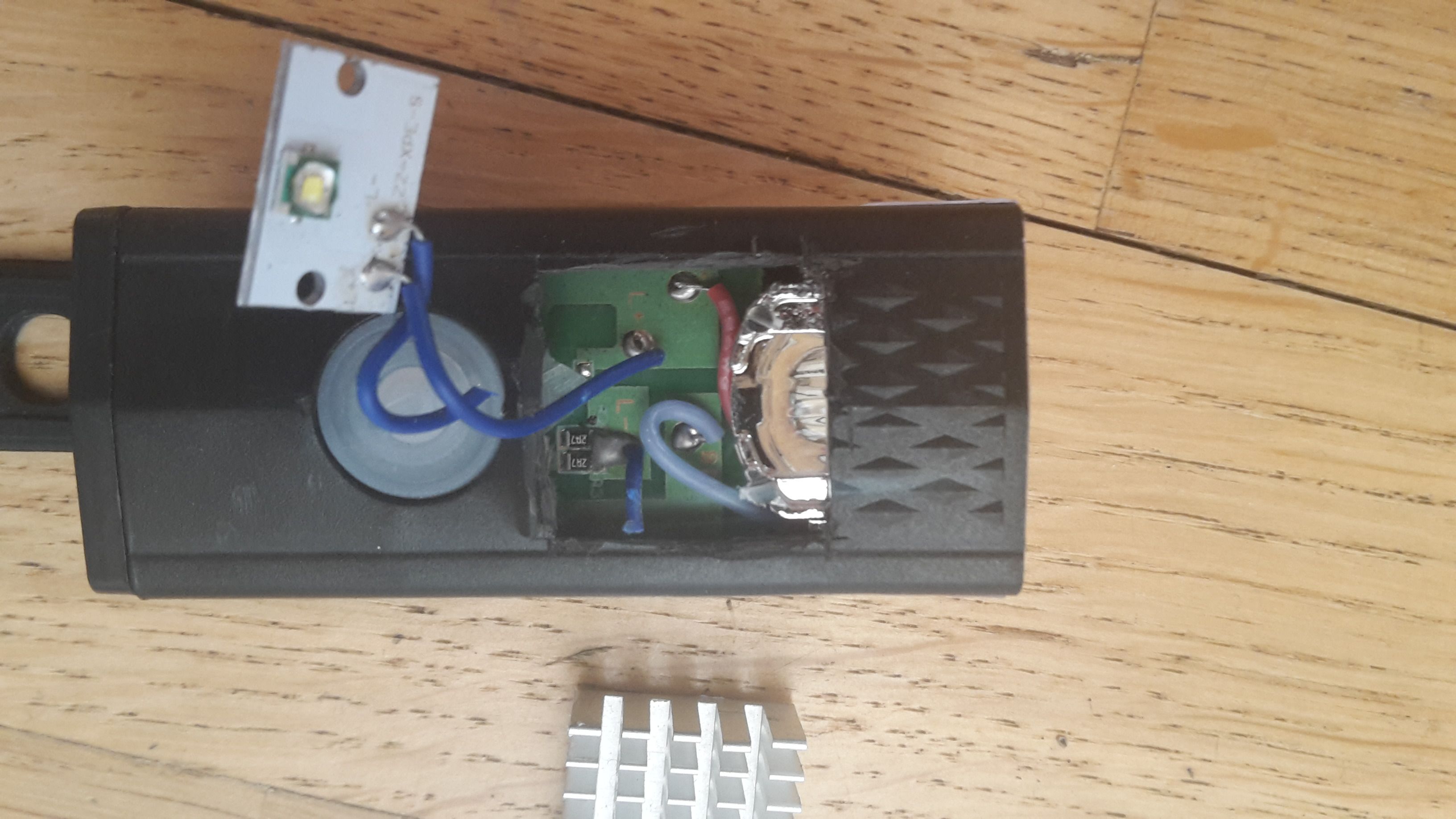 aber da das ~65 gramm gehäuse nur ~10 Watt permanente abwärme handhaben kann hab ich mich entschieden nur helligkeiten zu zeigen die im dauerbetrieb auch nutzbar sind.