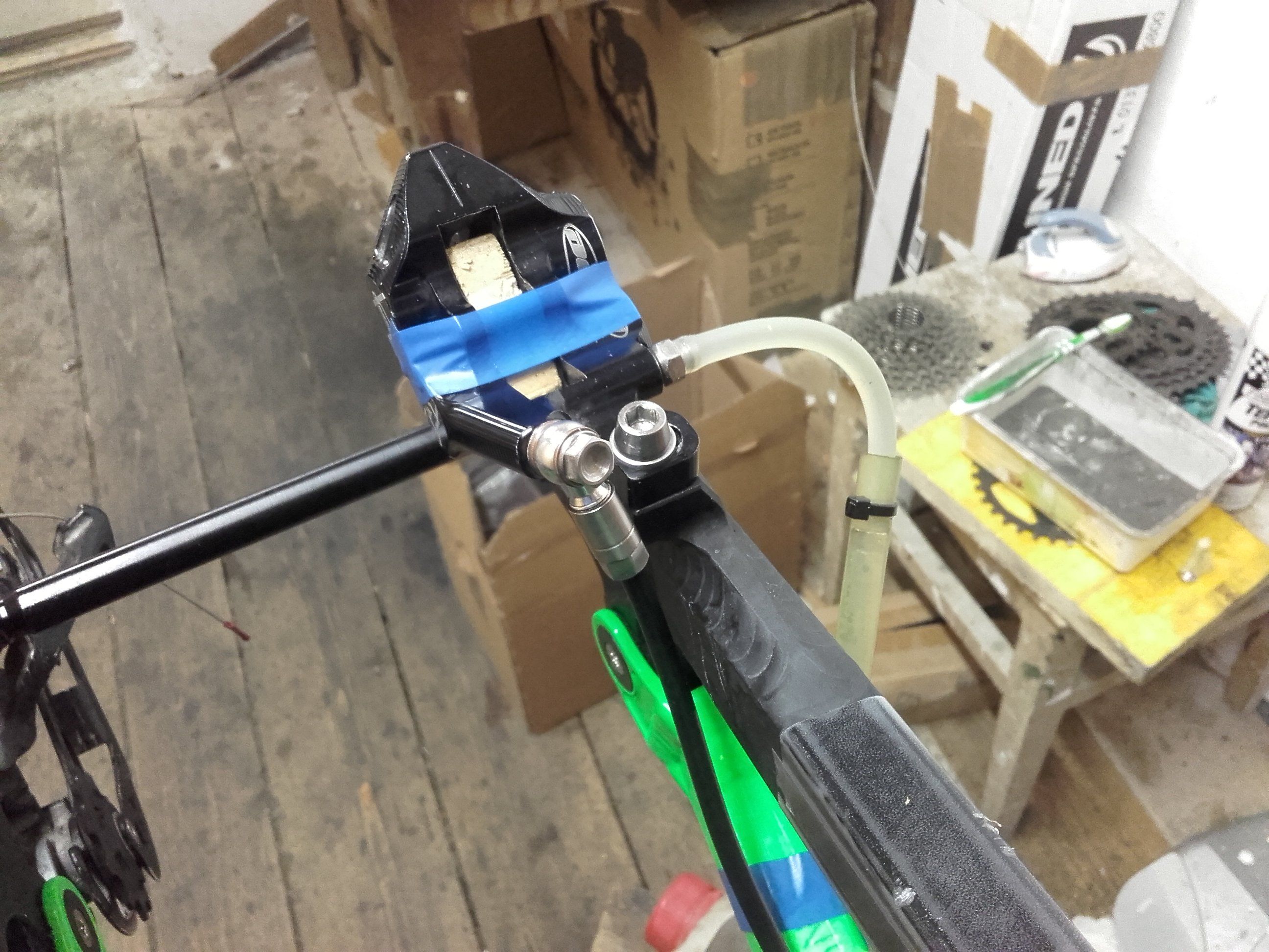 Die Öse an der Bremsleitung lässt sich nach oben bzw. nach unten drehen, also nach oben drehen dann steht sie nicht am Adapter für den Bremssattel an!Ich verstehe zwar nicht, was du meinst, aber ich werde mal die Position des Abgangs mit der des Entlüftungsnippels tauschen.