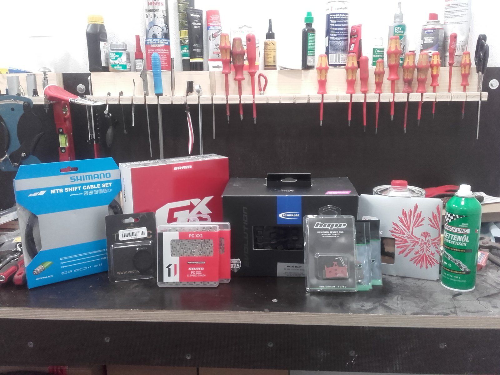 Ich lege mir gerade einen Ersatz- und Verschleißteilvorrat für die kommende Saison an. Kann ich jedem empfehlen, weil man ja nicht weiß, die verrückt das alles heuer wird. Gerade bei den Bremsbelägen von Hope kann ein Vorrat nicht schaden.