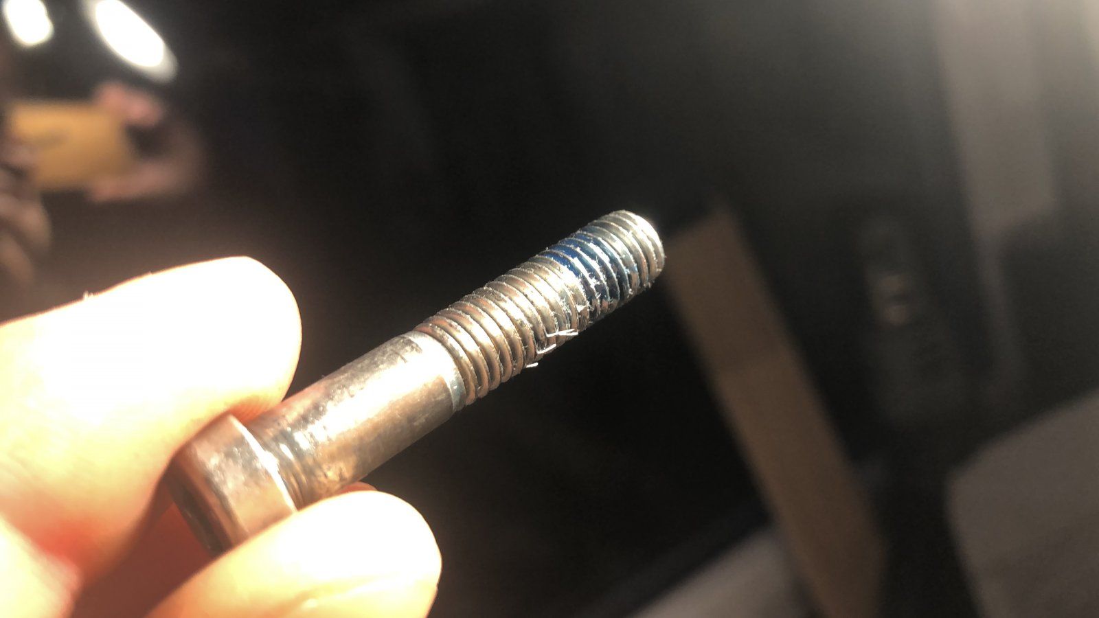 Außerdem hat die Dämpferschraube feine Metallspänchen, die vom Gewinde abgeschert sind: