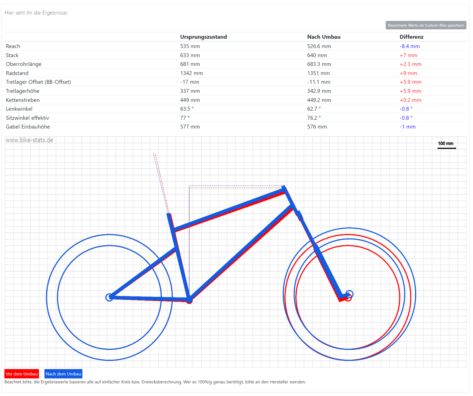 Es ändert sich also eigentlich nur das Laufrad und damit natürlich auch Lenk und Sitzwinkel.
