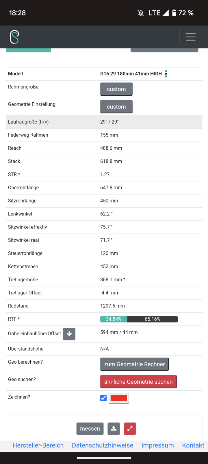 Ich hatte 29er Era mit 170mm und hinten 222mm Dämpfer. Fand ich ziemlich perfekt so. Dämpfer auf high meine ichIch hatte vor ein paar Seiten schon einmal grob wegen mullet im G16 gefragt...
