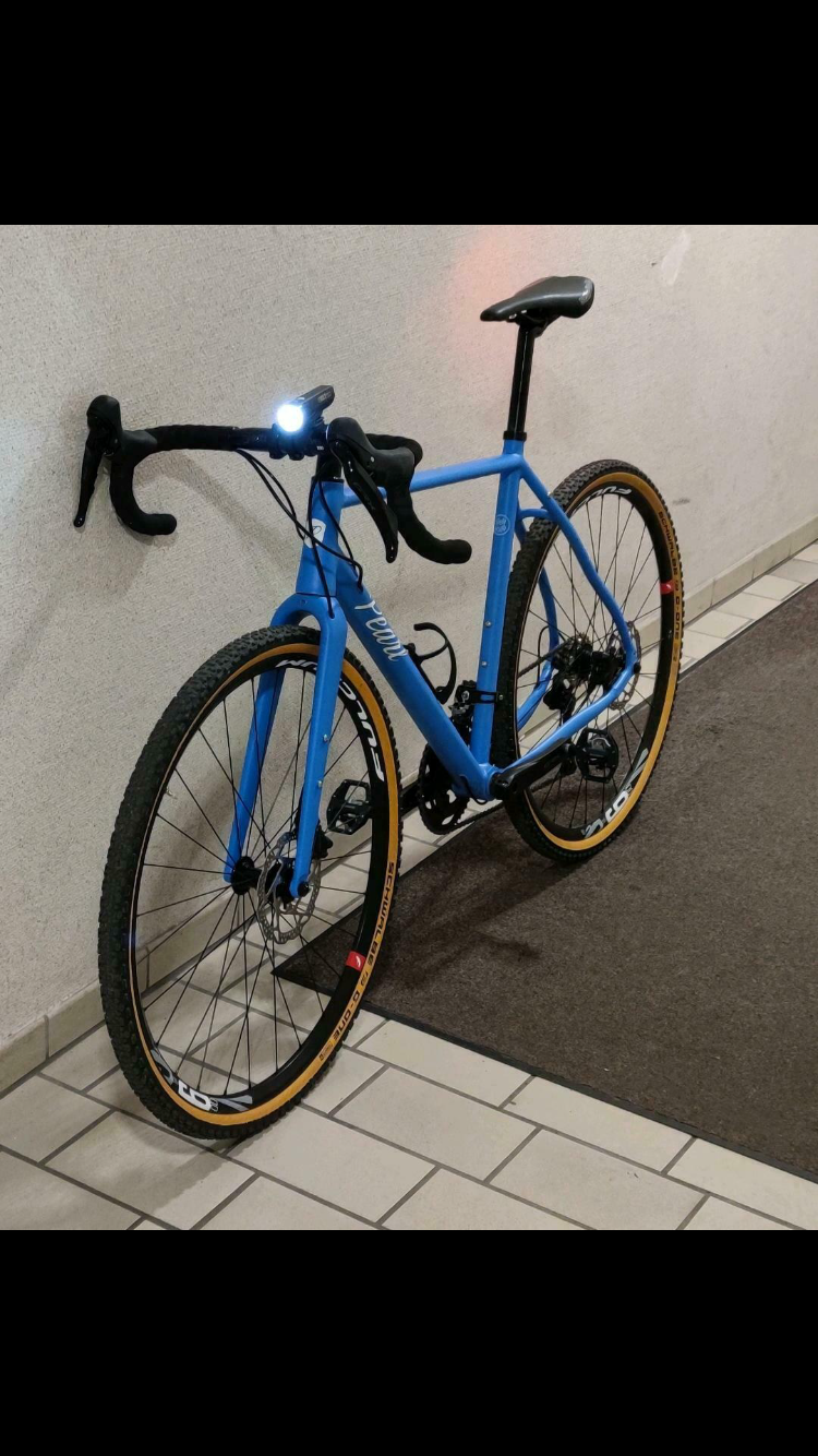 Das Bike hat eine Noa 120k Nabe und ist deshalb sehr laut, das Kabel für die Vorderradbremse ist durch die Gabel gezogen und die restlichen Kabel sind sehr lang.