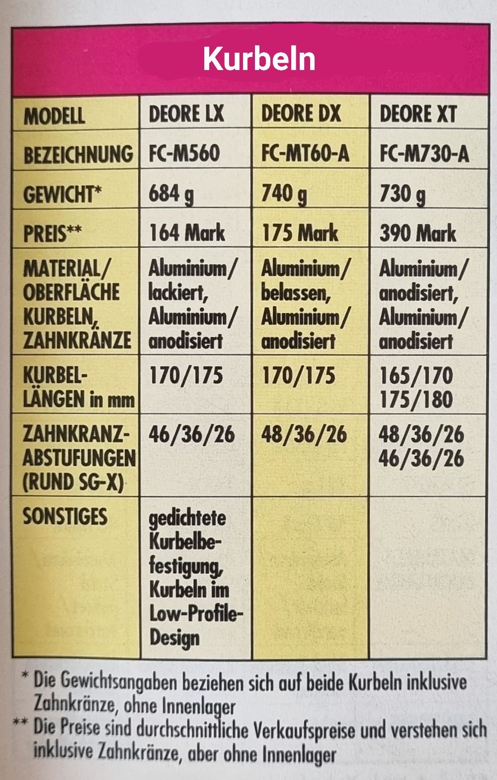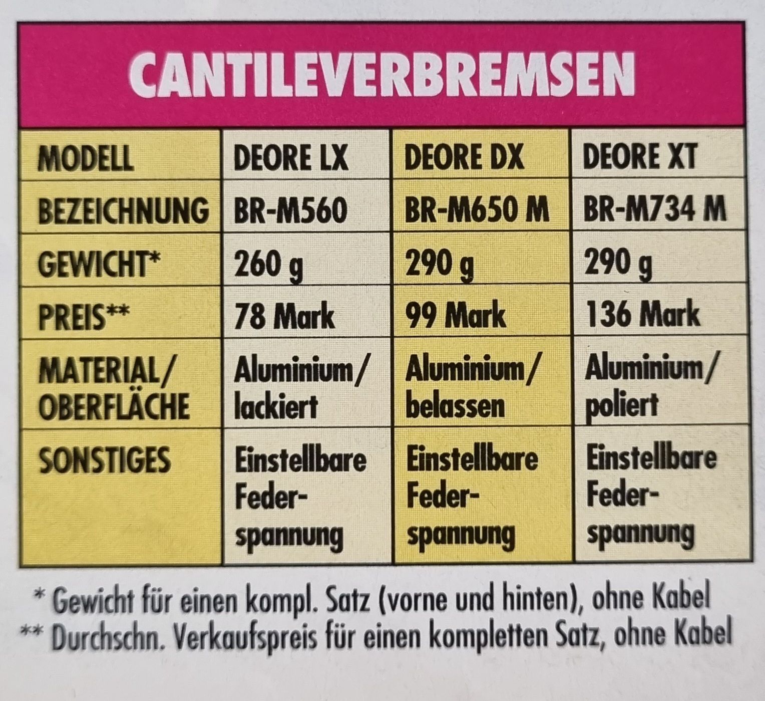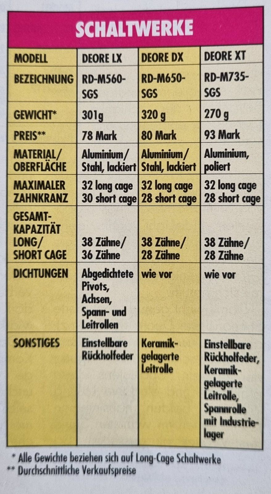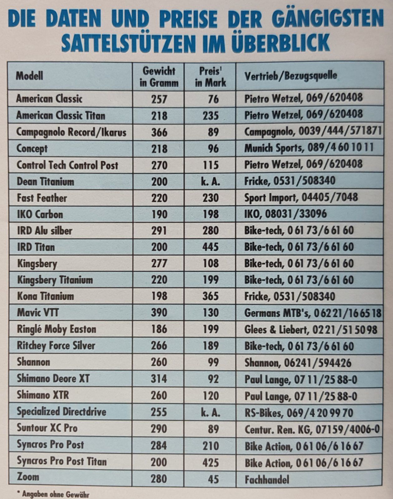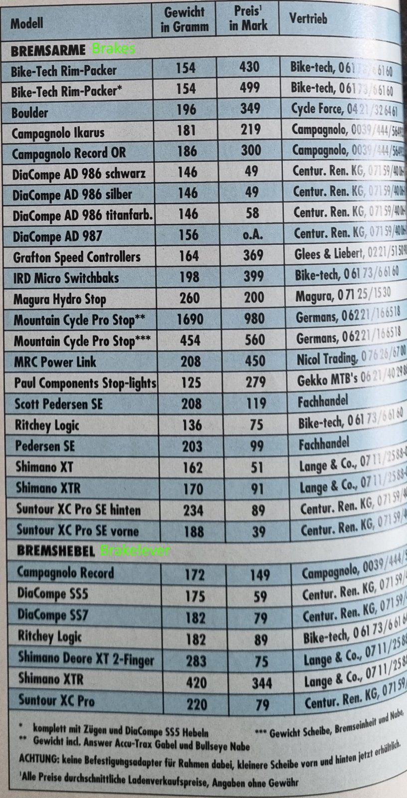 Die Gewichtsangaben in der Bike sind also mit Vorsicht zu genießen, oder nur zur ungefähren Orientierung. Für eine tabellarische Gewichtsdatenbank sind die Angaben der Bike absolut nicht geeignet.