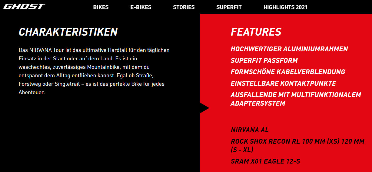 Das Ghost Nirvana ist eigentlich nicht meine erste Wahl, hätte gerne ein Enduro Fully oder zumindest ein deutlich abfahrtorientierteres HT gesucht (z.b. Ragley Mmmbop)