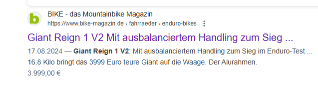 Dann freue ich mich zur Beruhigung der Gedanken, wenn Du auf Youtube neue Videos hochlädst und mit dem Trance in Finale fährst. Würde auch gerne mal dort Urlaub machen, aber irgendwie ist das nicht genug um ein Enduro, zu kaufen. Reign 1 ist aktuell bestellt, aber wird vrsl. storniert.