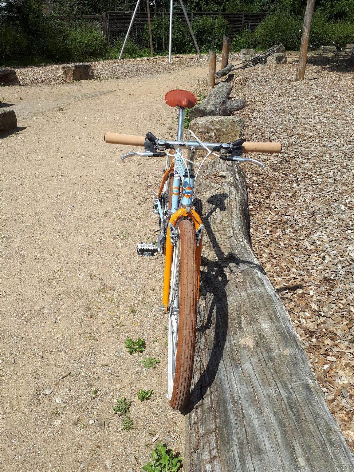 Die Farbe des Rahmens ist auf den User Radsatz zurüzuführen. Habe ihn aber nicht von ihm. Ist mir in der kleinen eBucht über den Weg gelaufen. Die Farbgebung hatte mir so gefallen, dass ich es dann nach einiger Zeit zu mir holte.