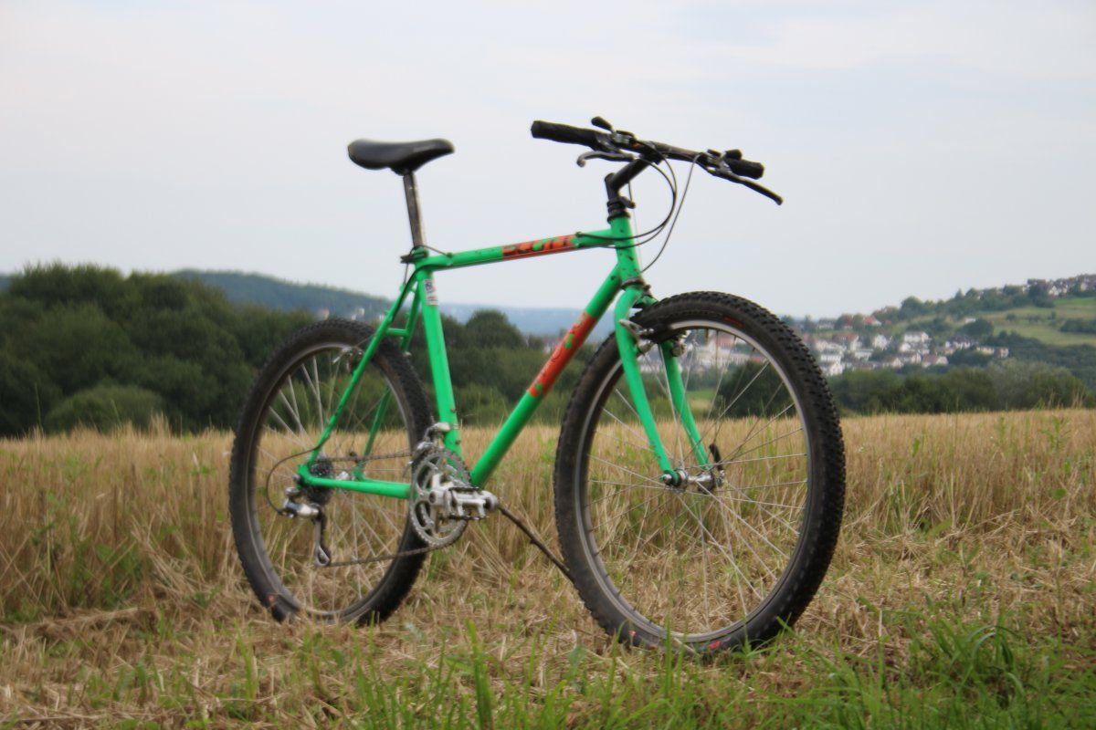 hier mein Scott Montana (MY 1987?) Derzeit hängt sie gestrippt in der Werkstatt rum. Die Originalteile sind noch in recht ordentlichen Zustand, so dass ich ein paar Macken (Sattelrohr, Kettenstrebe) gerne retuschieren möchte. Weiß jemand den passenden Farbton für das Grün in RAL?