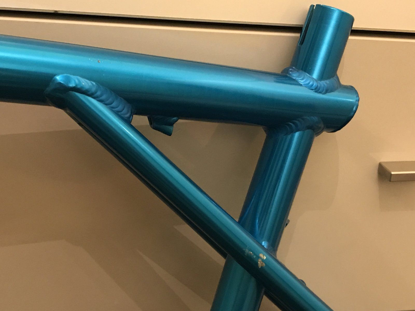 • Leichter Eloxalabrieb am Tretlagergehäuse rechts (abgesprungene Kette)