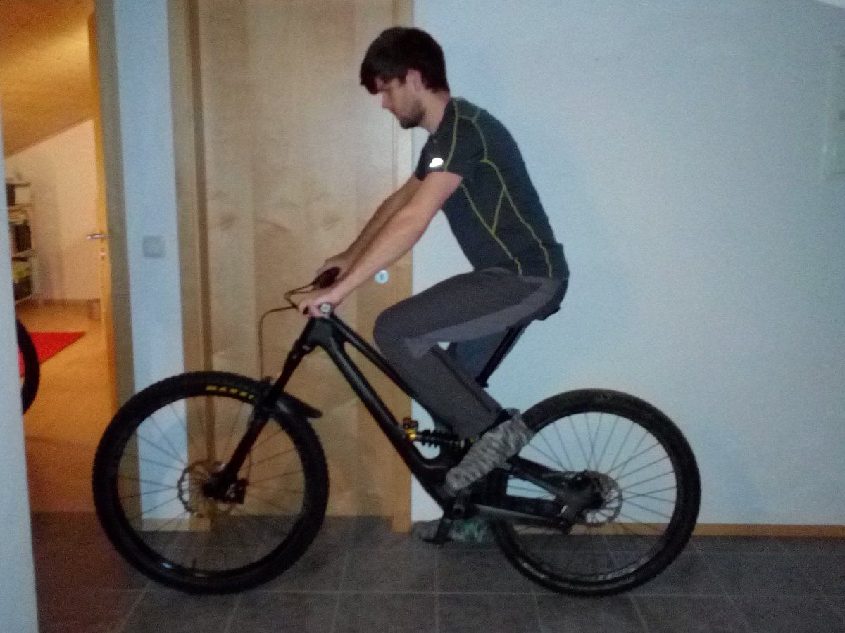 ich hab jetzt den sattel ganz vor geschoben und finde die sitzposition nicht ungewöhnlich...ich trete nicht von hinten...leider ist die stütze ein bischen zu kurz...