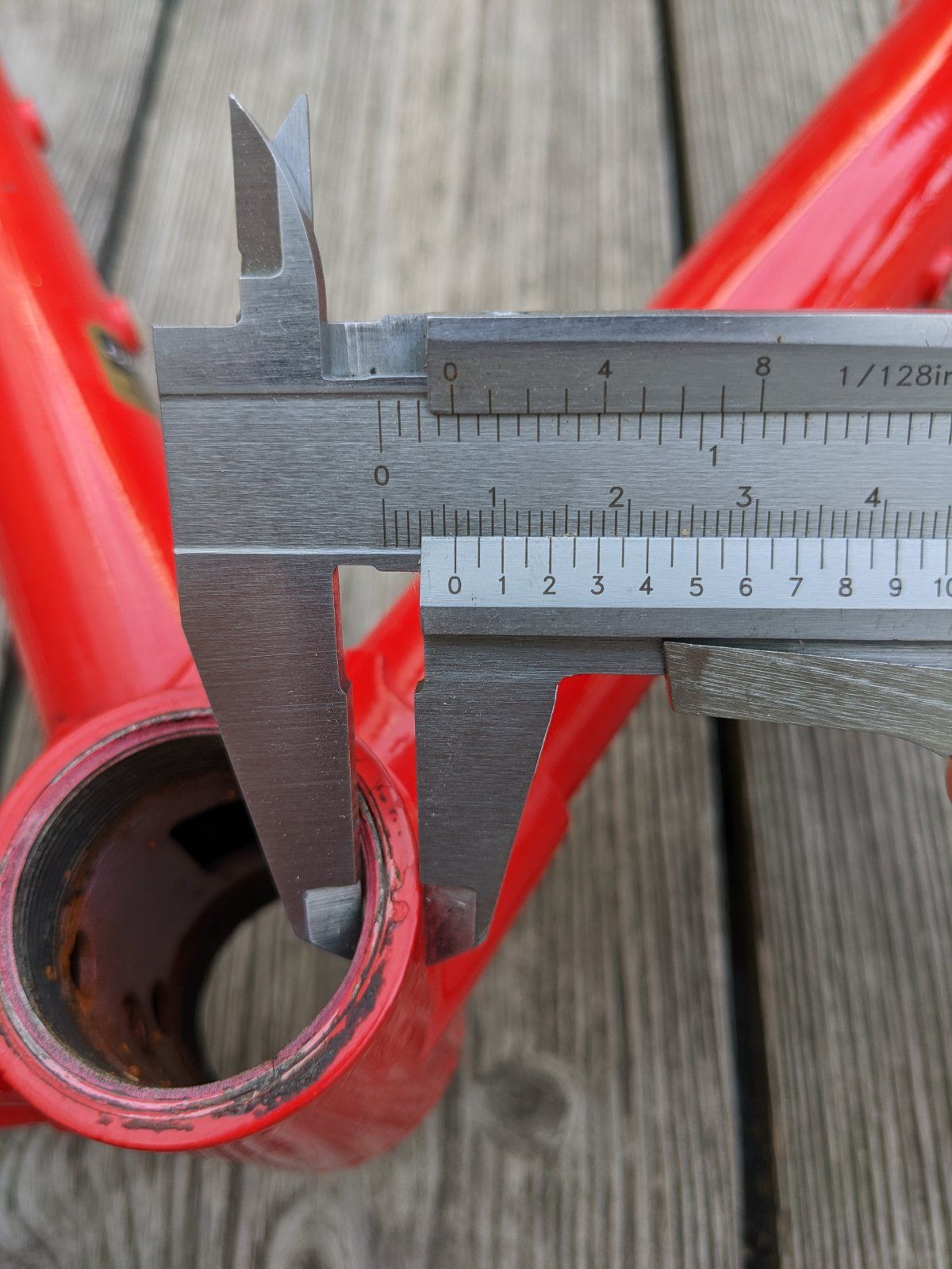 Zum einen kann ich die originale 28.6 Stütze gar nicht komplett ausreiben, denn deren Innenbohrung war nicht zentrisch, ich würde also zwangsläufig den Rahmen beschädigen - und ob ich nun mit 27.2 oder 25.0 improvisiere, ist doch egal.