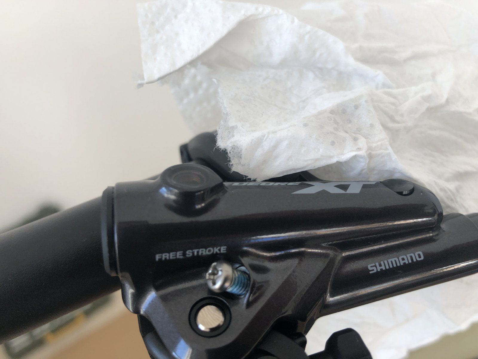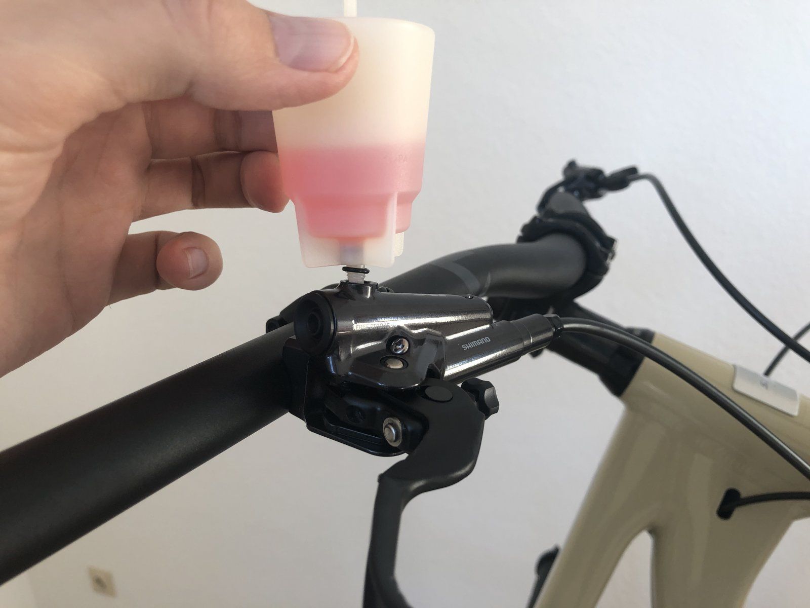 Anschließend Gummidichtung für den Rahmen, die Abdeckkappe, Schraube und Olive aufgesteckt, die Leitung in den Bremsgriff geschraubt und den Bleed Block montiert. Dank der sehr einfachen Entlüftungsprozedur von Shimano und zahlreichen Youtube Videos war das sogar noch einfacher als ich es von früher in Erinnerung hatte.