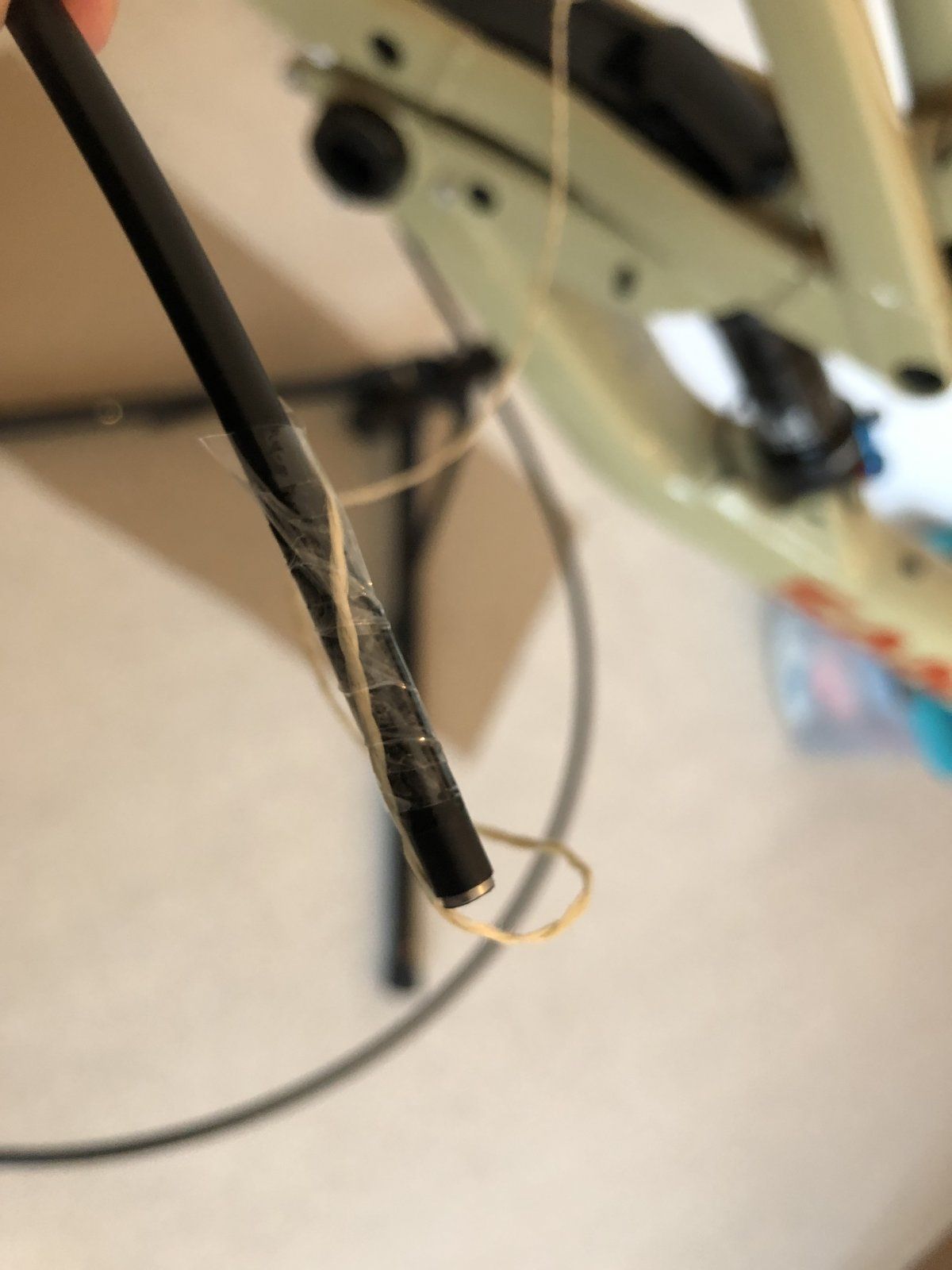 Am Oberrohr, war es einfacher, weil ich mit ausgebauter Gabel gut dran kam. Aber eines vorweg: diese vermaledeiten Gummidichtungen für die Leitungen bringen mich zum Wahnsinn!!! Auf der Seite mit Bremsleitung + Schaltzug krieg ich das Teil einfach nicht mehr reingedrückt! Da muss ich nochmal mit Ruhe dran. Aber Santa Cruz --> gut gemacht ist anders! Gibts hier irgendeinen Trick???