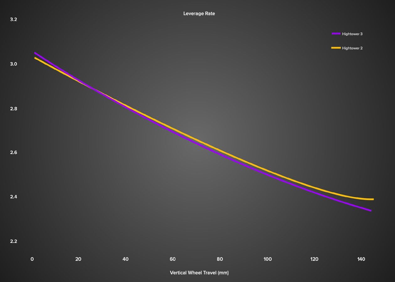 Die Kurve zum Leverage Ratio des HT3 zeigt ja ein progressives Verhalten (Übersetzungsverhältnis wird kleiner), mit einem linearen Übergang über den Federwegsbereich.