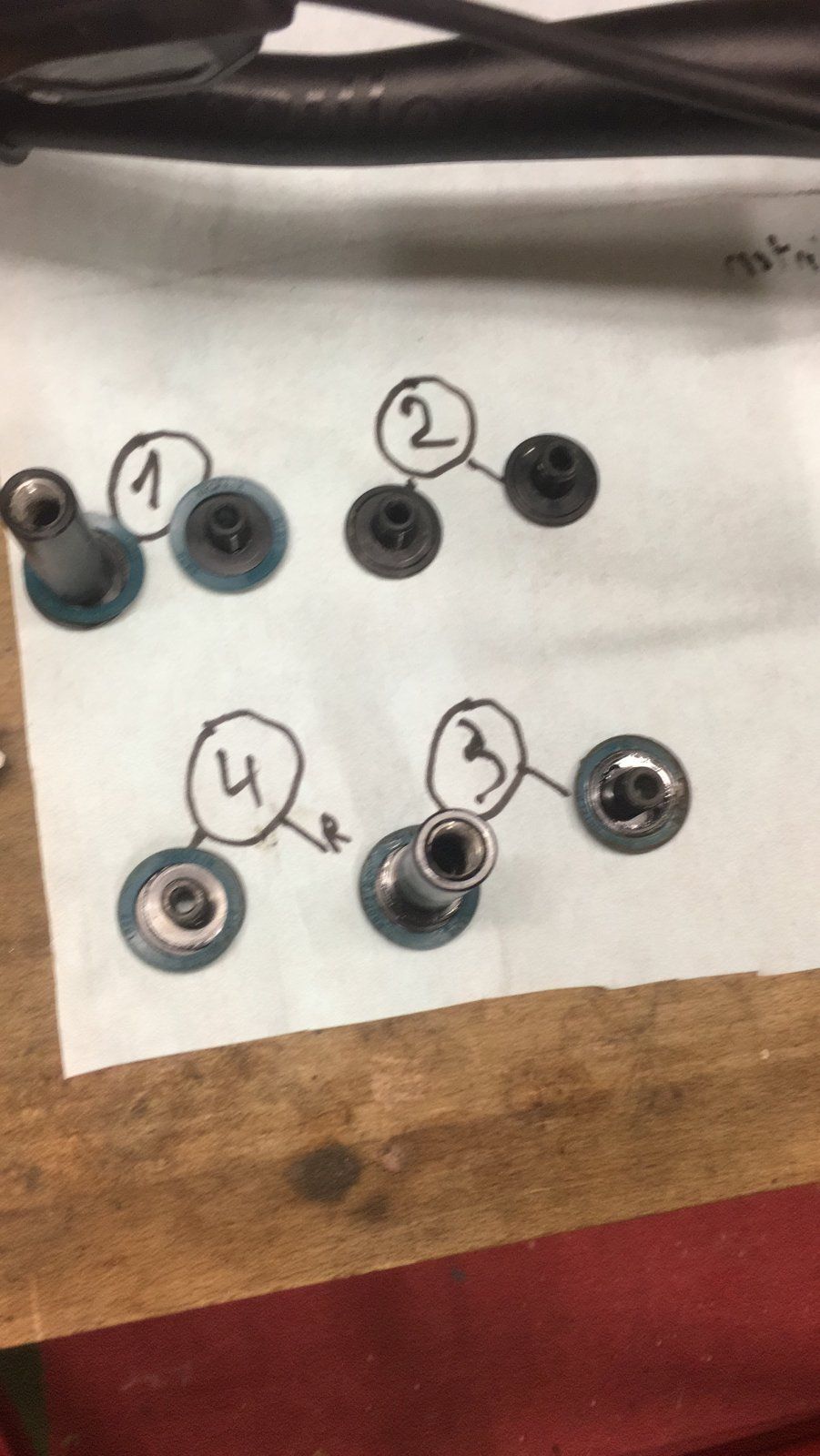 Zustand Lager. Am Punkt 1 und 2 komplett verschlissen, sehr rauh laufend; Lager Nr. 3 leicht rauher Lauf. Nr. 4 wie neu.