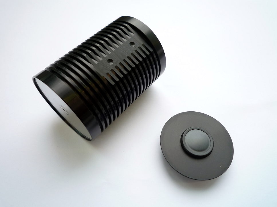 wenn du die Elektronik in der Akkuflasche unterbringst, dann würde dir doch eigentlich ein Kühlkörper mit gedichtetem Frontring ausreichen?