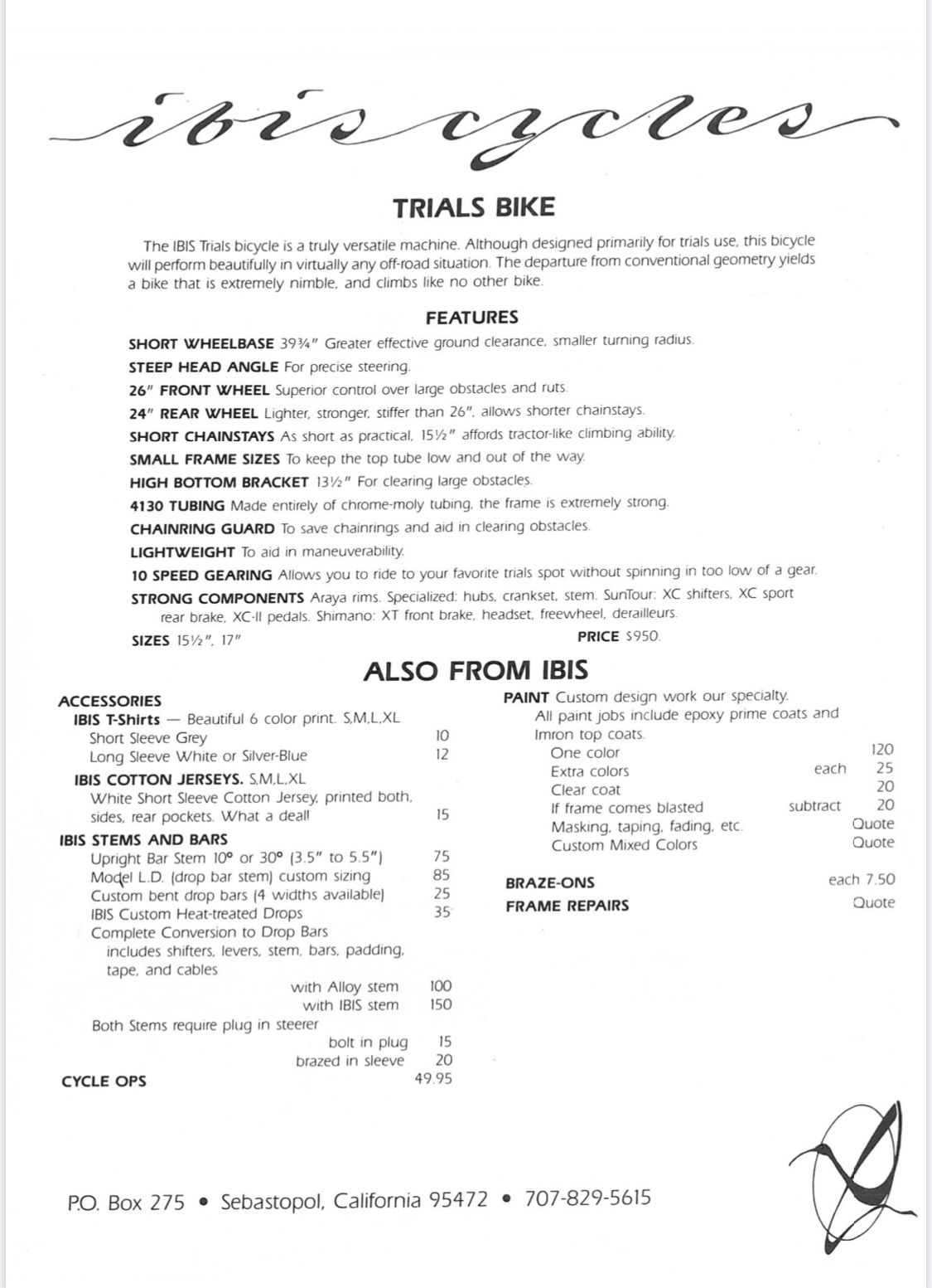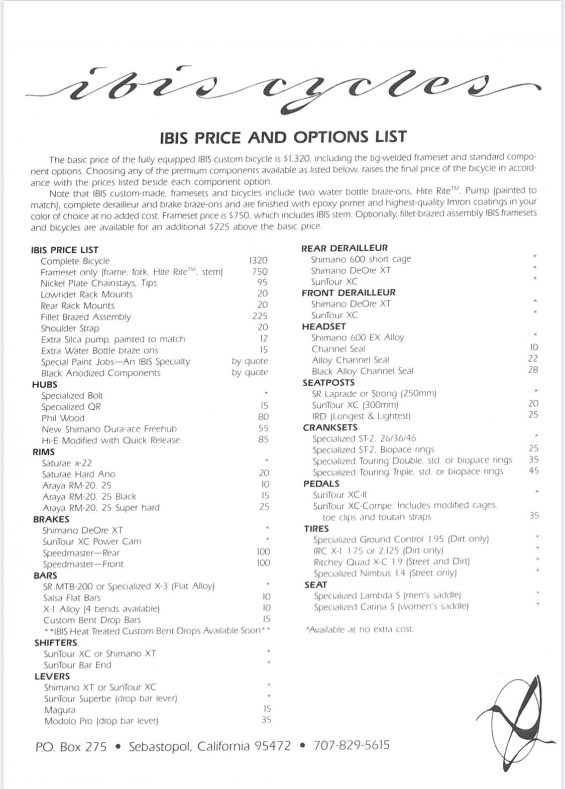 The Ibis Cycles #253 - a custom frame with great components. Awesome condition and little to change here. A great bike from the mid 80s – just in the transition between XT700 and XT 730 – the front cantilevers are actually 730s from late 1986. This is all original besides grips, tires, chain rings and chain (as far as I know).
