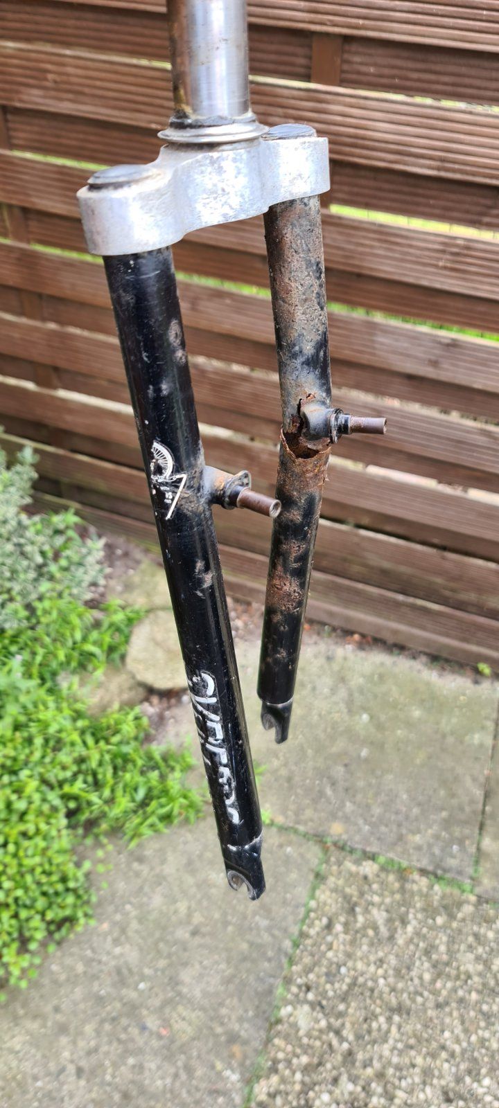 Da reichen mir Bilder und die Beschreibung "Top Zustand" - ich sehe abgenutzte Ritzel und Kettenblätter, verschrammte Kurbeln, Pedale, Steuersatz usw. ... und tatsächlich ausgeblichene Billigteile an einem Billigrahmen, d.h. für die XTR Komponenten hoch angesetzte 250€ - der Rest ist nix wert. Zum Vergleich: Das XTR Maragay oben befindet sich wohl tatsächlich in sammelnswertem Zustand, dürfte aber auch nur schwerlich einen Käufer für 750€ finden?
