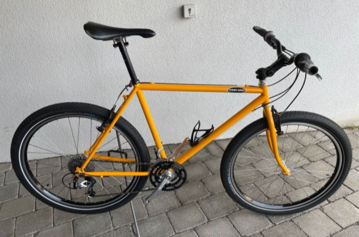 Aber die Lackierung am gezeigten Bike enttäuscht etwas und sieht aus der Ferne eher nach Patina auf nacktem CrMo aus. Wahrscheinlich hatte damals der Vertrieb bei Gary Fisher doch kalte Füße bekommen bzgl. des zu erwartenden Absatzes. :D
