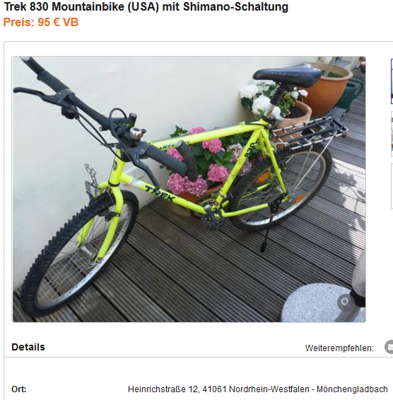 Bei Tri-Bike in Ravensburg findet man noch und alles NOS: Race Face Turbine LP, purple, 175mm, 2x Onza Ti Barends-Pärchen, eines komplett mit Überziehern, Syncros HC VR-Nabe, Cratoni Alu-Renner, ein Müsing mit kompletter Superbe Pro und sicher noch viel mehr. Keine absoluten Schnäppchenpreise, aber wenn man´s unbedingt haben möchte, auch nicht zu viel verlangt.