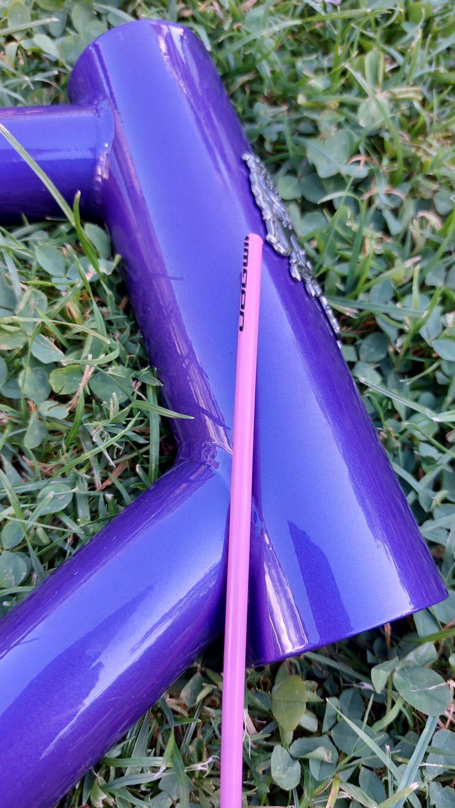 Ziel war nie ein Hingucker. Das Ding ist am Ende seiner Nutzungsdauer und meine Tochter durfte sich bei den Farben mit austoben. Die weißen Anbauteile waren noch in der Kiste, die ursprünglich verbauten schwarzen brauchte ich woanders. Schlicht mein farbenfroher Pendlerbock. Mehr steckt da nicht dahinterDie Räder sind alle nur OK.