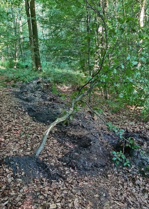 ich finde es sehr fraglich, dass er junge Bäume ausreist um die Wege zu sperren, zusätzlich zur losen Erde die dort aufgeschüttet wird. Zusätzlich werden frische Äste genutzt um diese dann auf die lose Erde zu werfen.