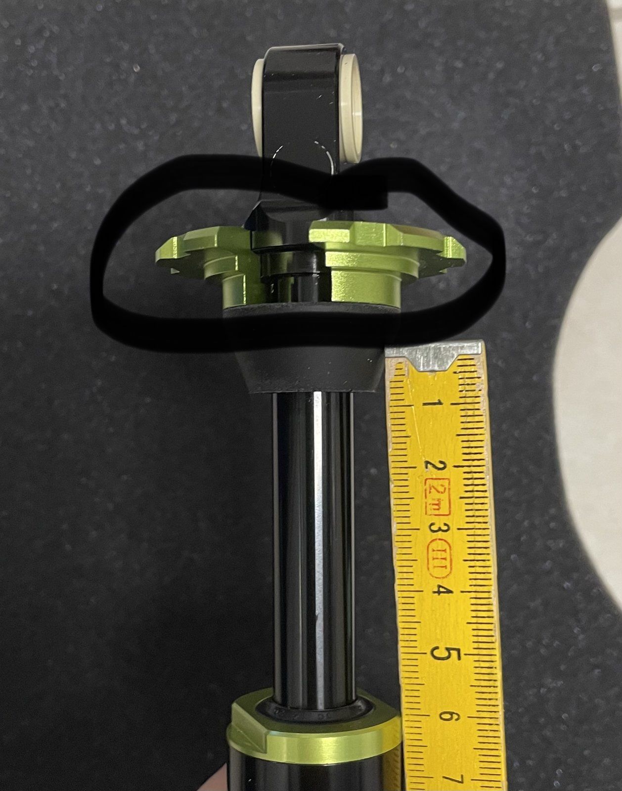 Konkret heisst das bei mir 69mm von dem Federteller mit Begrenzer (ohne Dumper) bis zum anderen sichtbare Ende