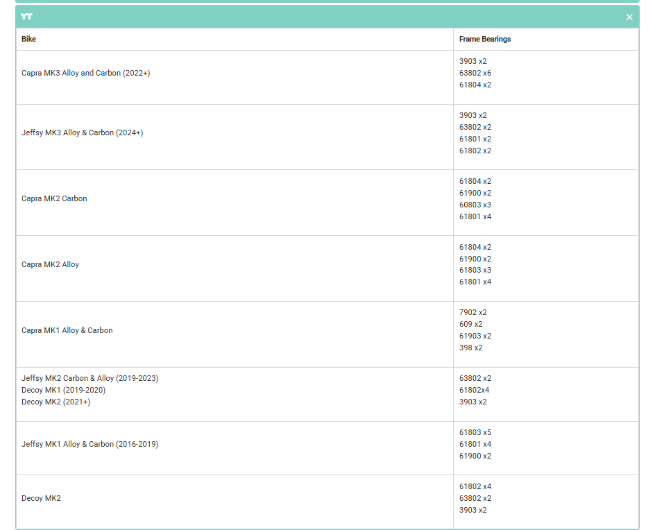 Hat jemand die Maße der Hinterbaulager des Jeffsy 3? Oder sogar die Explosionszeichnung. Bei YT gibts die nicht im Servicebereich und kaufen kann man das Set auch nicht.