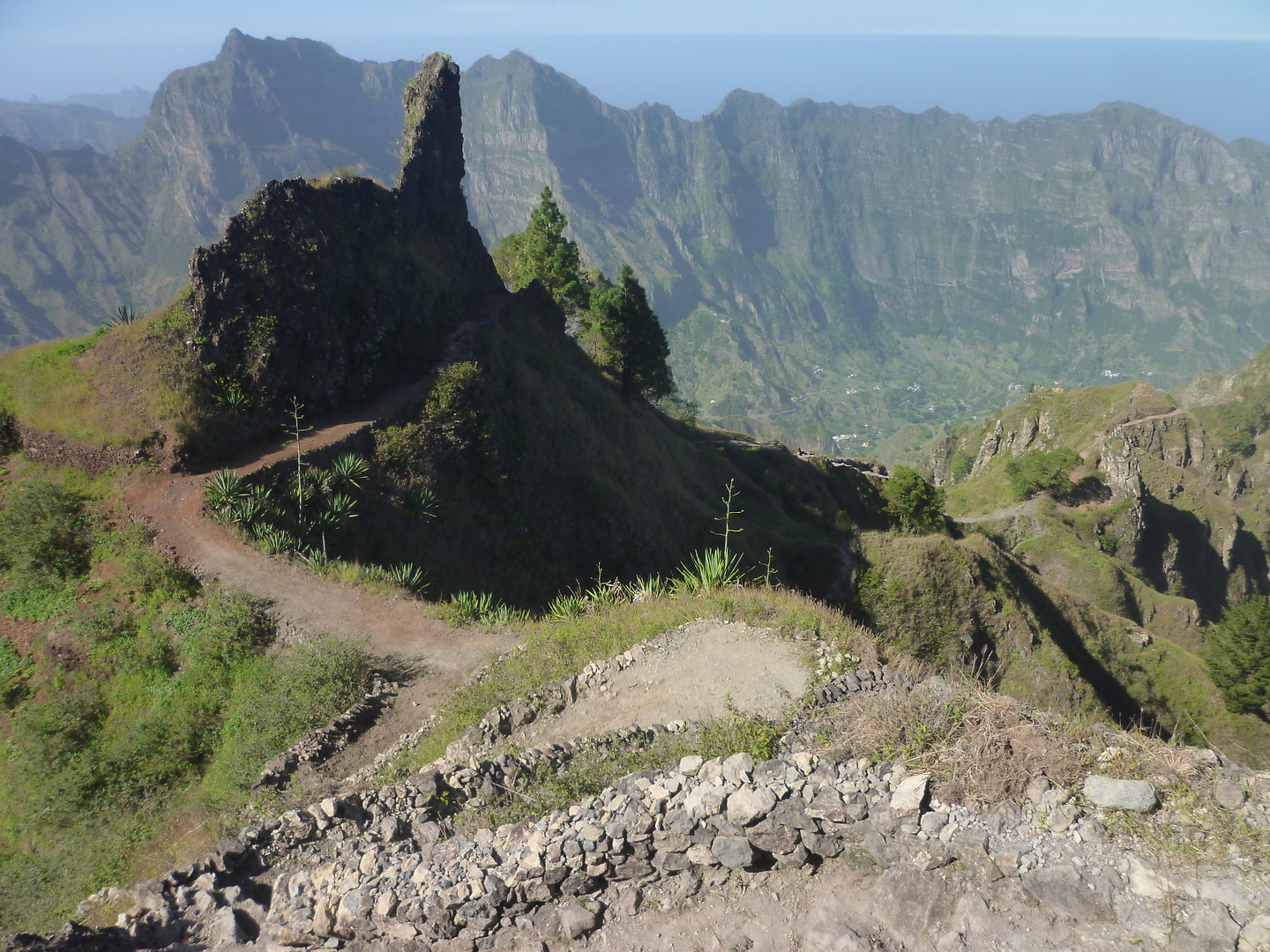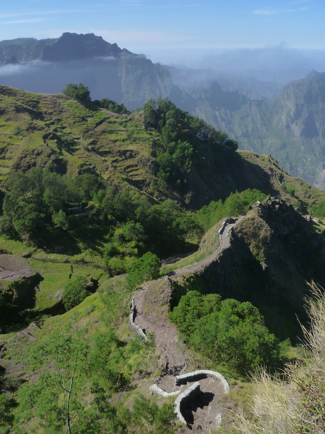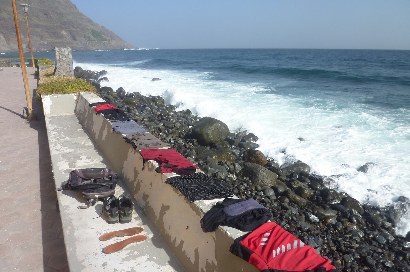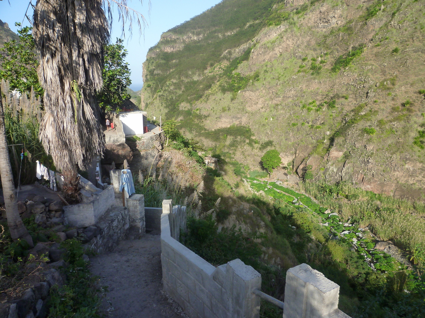 Gegenverkehr, diese Kapverdenlady trägt in etwa das Gewicht von Specki auf dem Kopf, sie hat noch sechshundert Hömes vor sich. Und während wir und noch unterhalten...