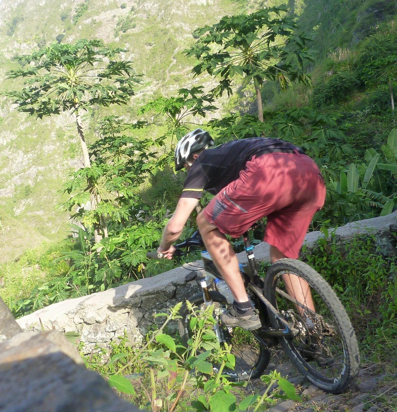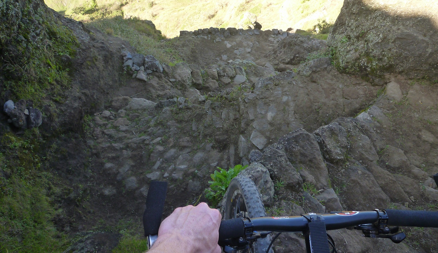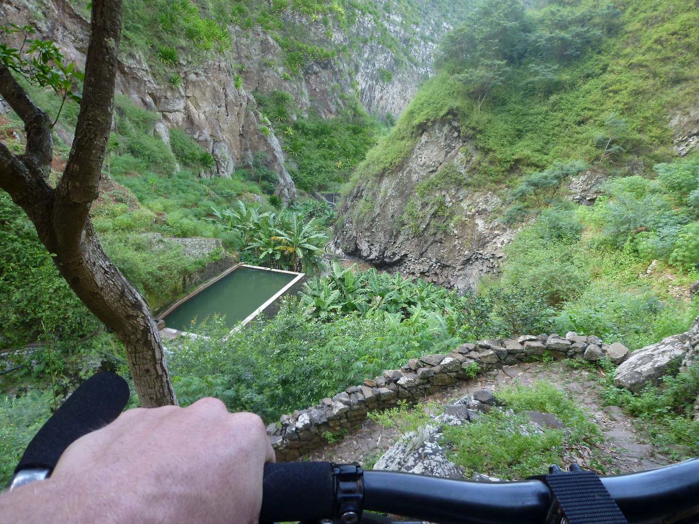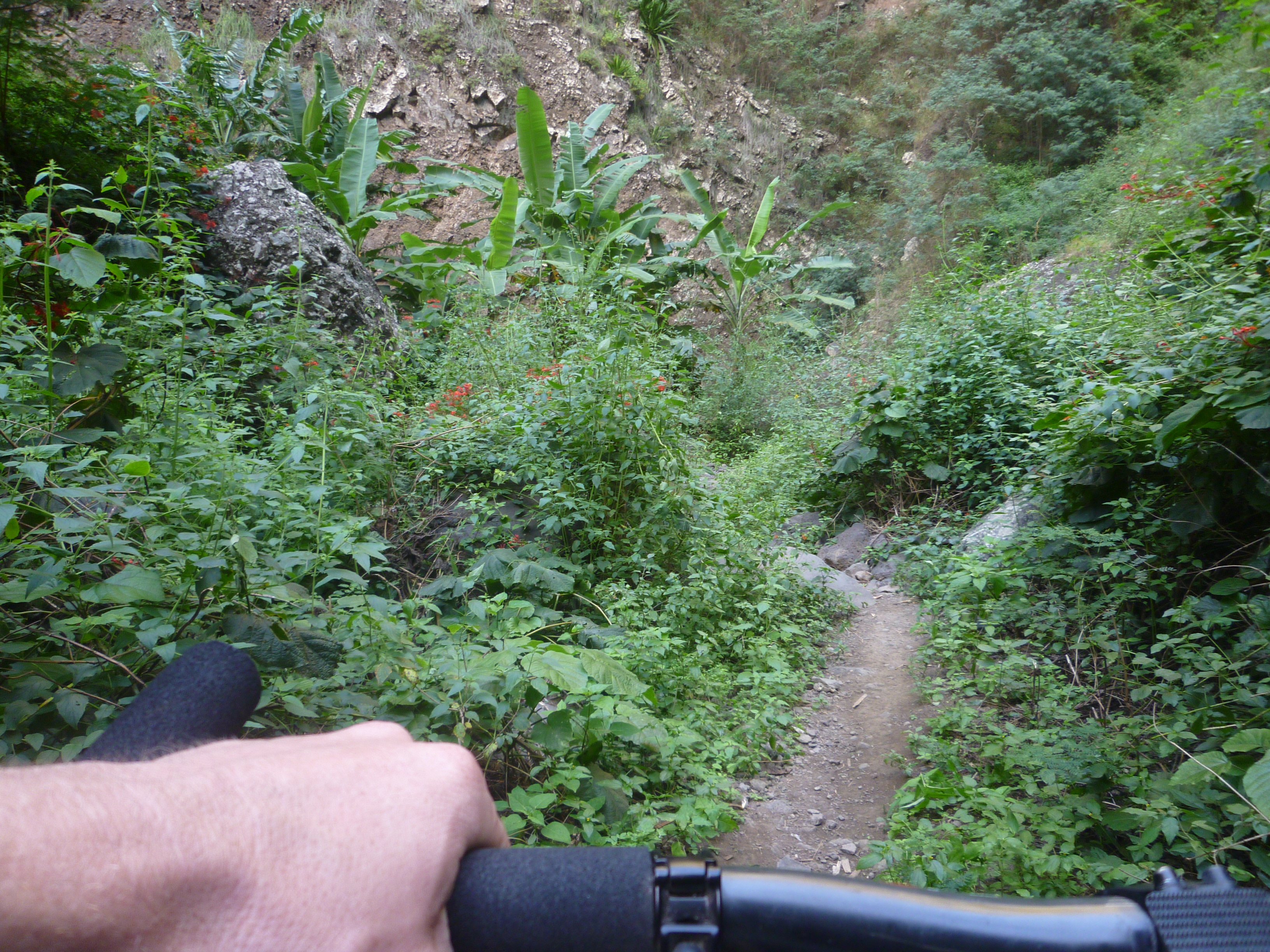 103a und 103 vom Pico Cruz nach Paul? Hart. Sehr hart! Sehr steil und sehr stufig und sehr kurvig, die obere Hälfte bis nach Santa Isabel ist glasklar S4. Wer drauf steht oder die Stellen mit seinem 180mm-Freerider einfach wegbügeln kann, wird dort seinen Spaß haben. Specki und mir wars zugegebenermassen zu schwierig. Die zweite Hälfte auf dem 103er bis hinab zum Meer wird dann deutlich leichter, ein gemütliches S2-Wegerl mit nur kurzen Flussbettschiebepassagen.