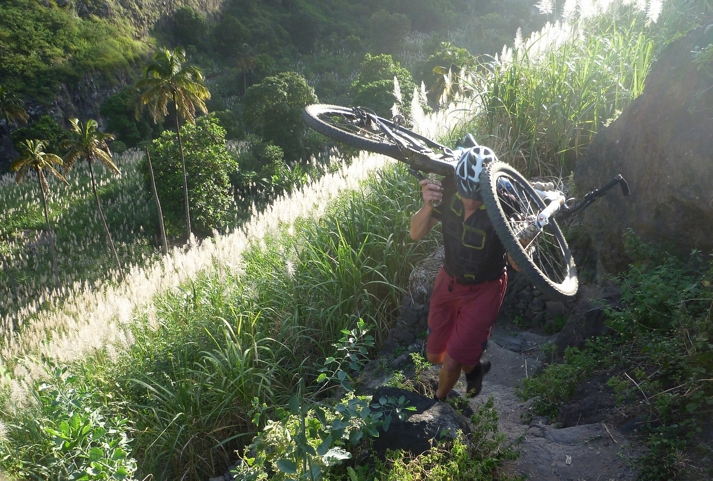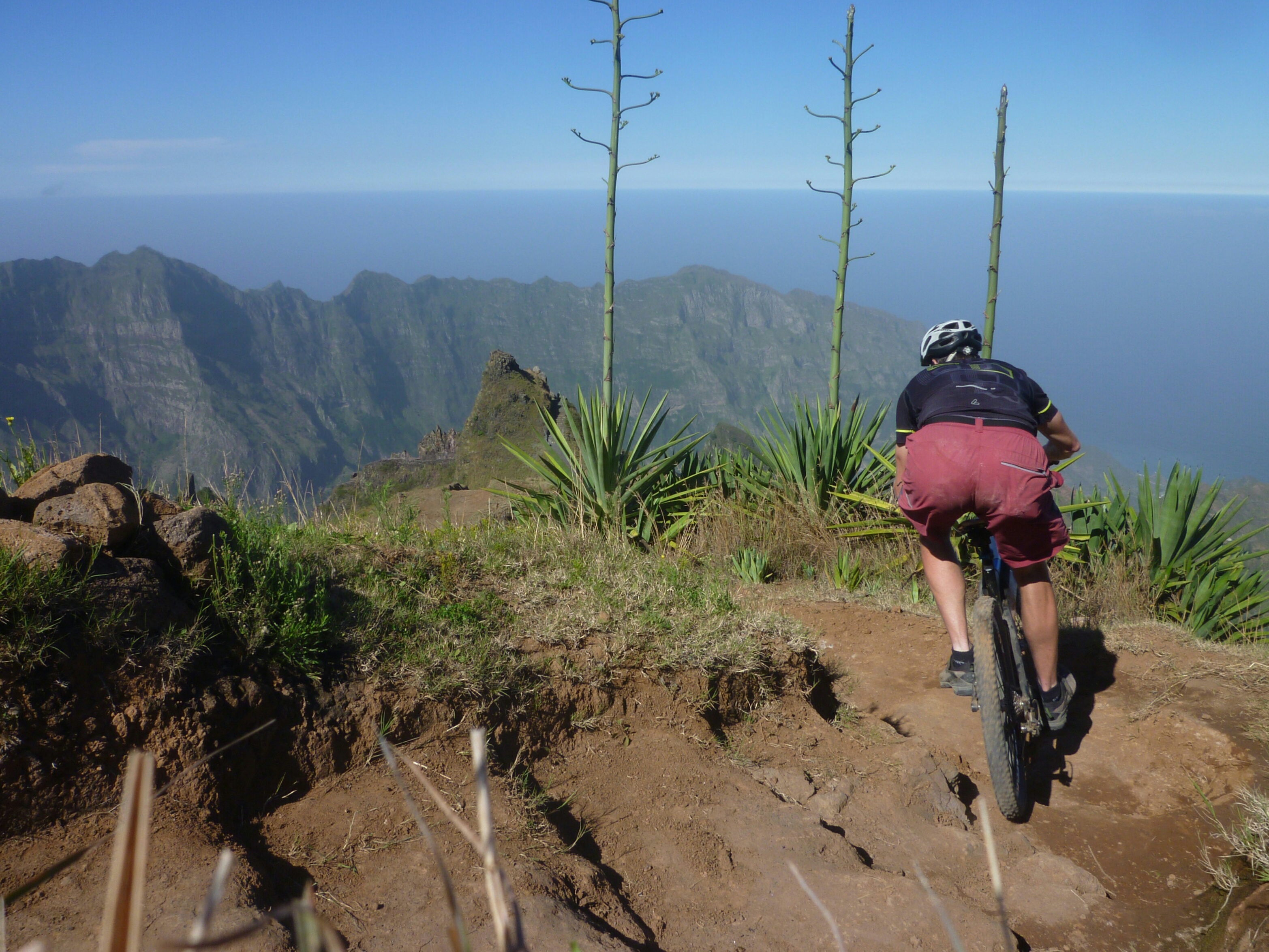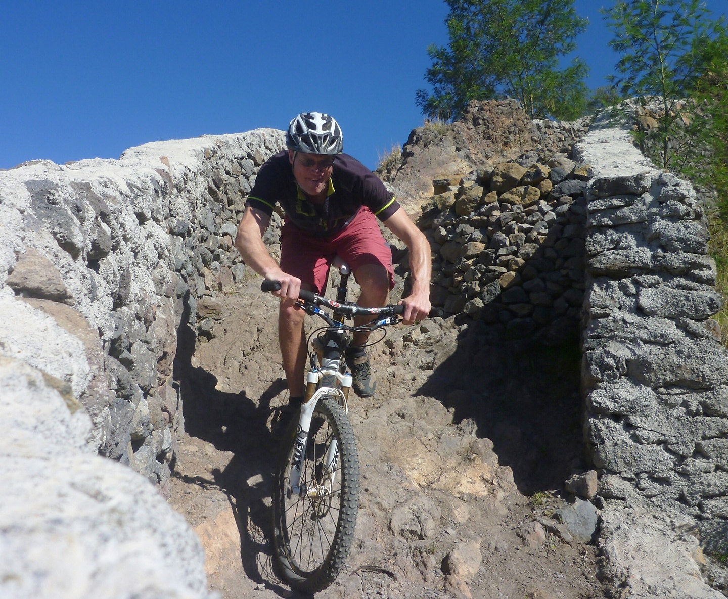 103a und 103 vom Pico Cruz nach Paul? Hart. Sehr hart! Sehr steil und sehr stufig und sehr kurvig, die obere Hälfte bis nach Santa Isabel ist glasklar S4. Wer drauf steht oder die Stellen mit seinem 180mm-Freerider einfach wegbügeln kann, wird dort seinen Spaß haben. Specki und mir wars zugegebenermassen zu schwierig. Die zweite Hälfte auf dem 103er bis hinab zum Meer wird dann deutlich leichter, ein gemütliches S2-Wegerl mit nur kurzen Flussbettschiebepassagen.
