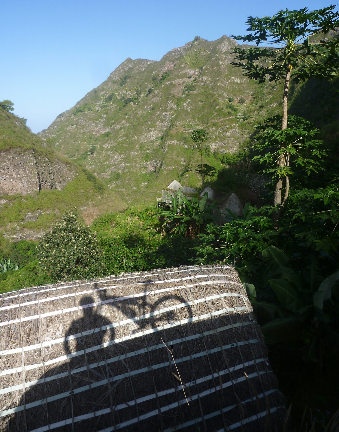... kommt von hinten ihre Freundin daher, mit schlappen zweiunddreissig(!) Kilogramm auf dem Schädel. Ich habs kurz probiert... OH GOTT! Und damit geht sie dreimal wöchentlich zur Erntezeit von Santa Isabel eintausend Höhenmeter nach Paul runter, berghoch dann mit anderem Gepäck. Was sind wird doch für Warmduscher mit unseren Karbonrähmchen und Ultralightkrempl auf den Alpencrosstragestrecken... das nächste Mal am Eisjöchl werd ich daran denken.