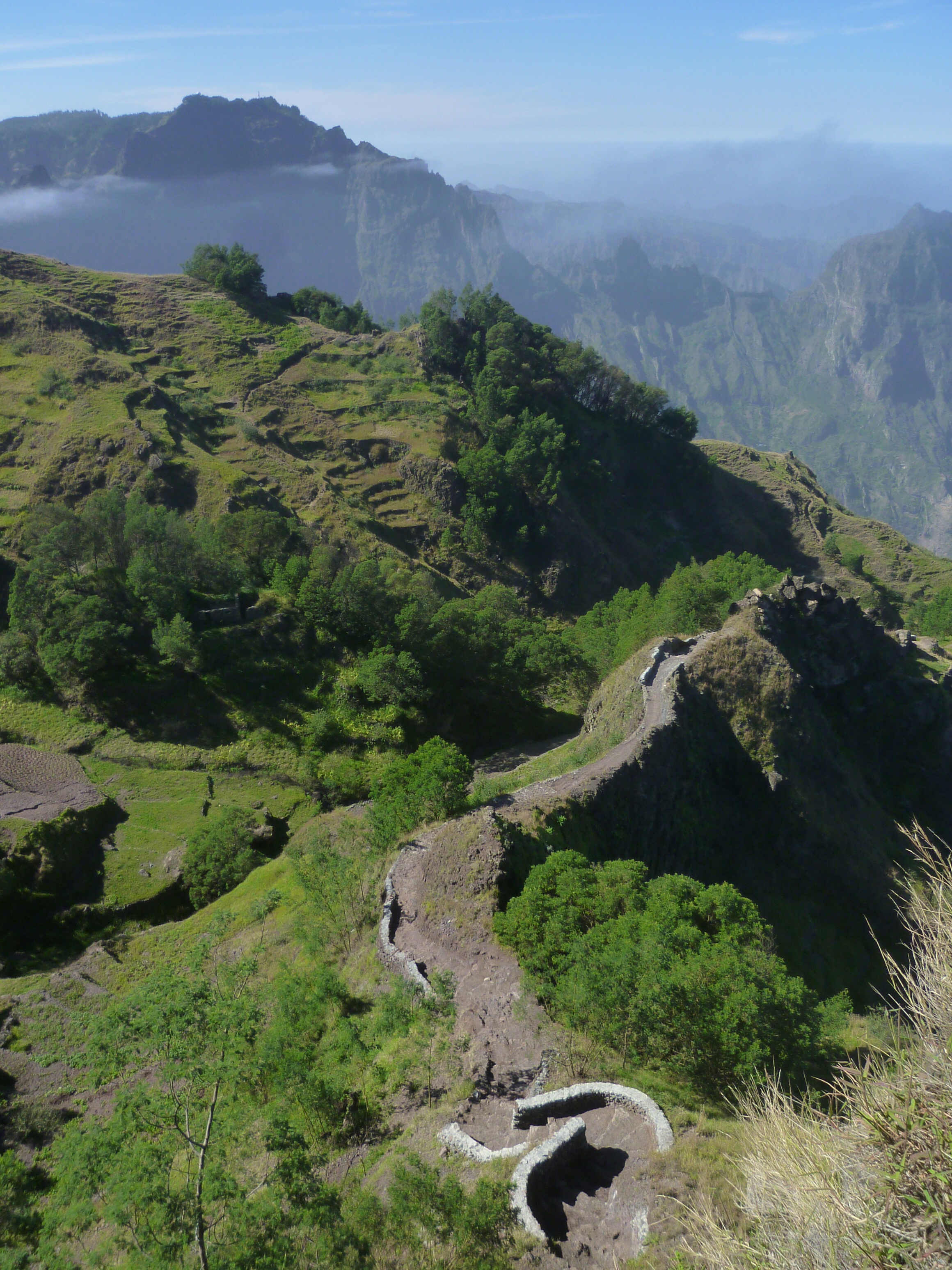Es ist zwar immer noch steil, aber die elenden Riesenstufen sind verschwunden. Passt!