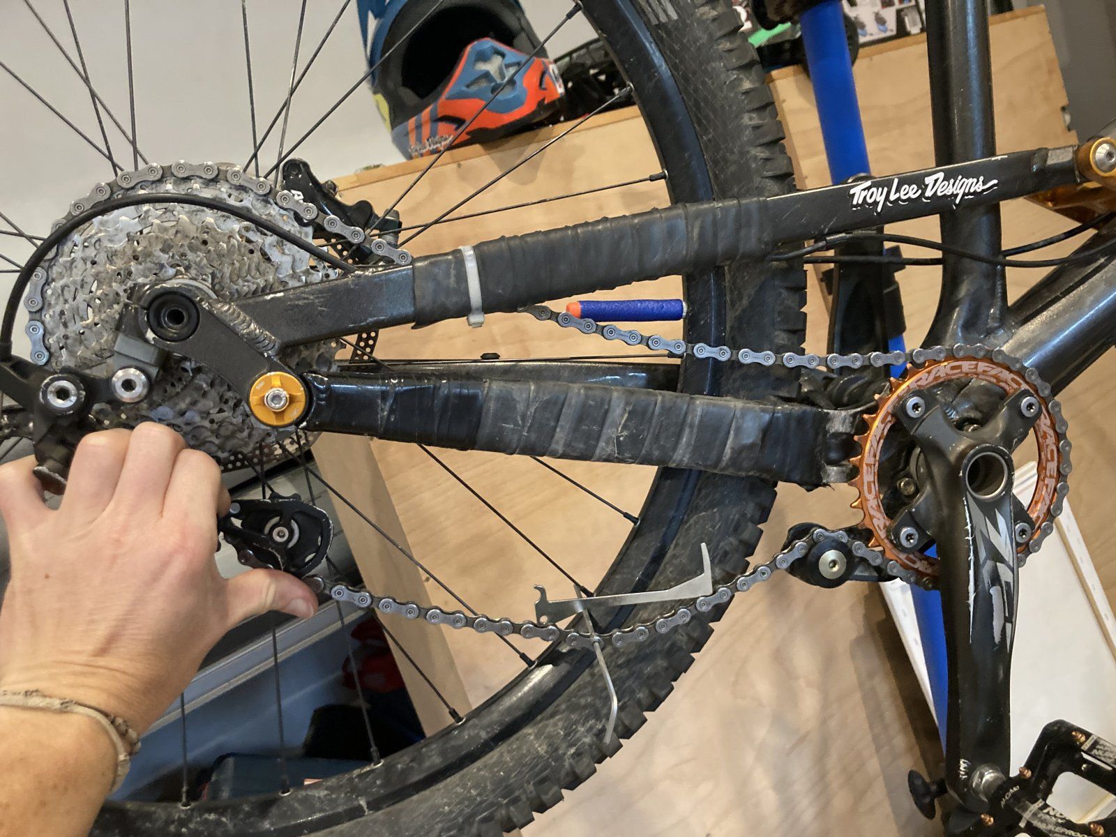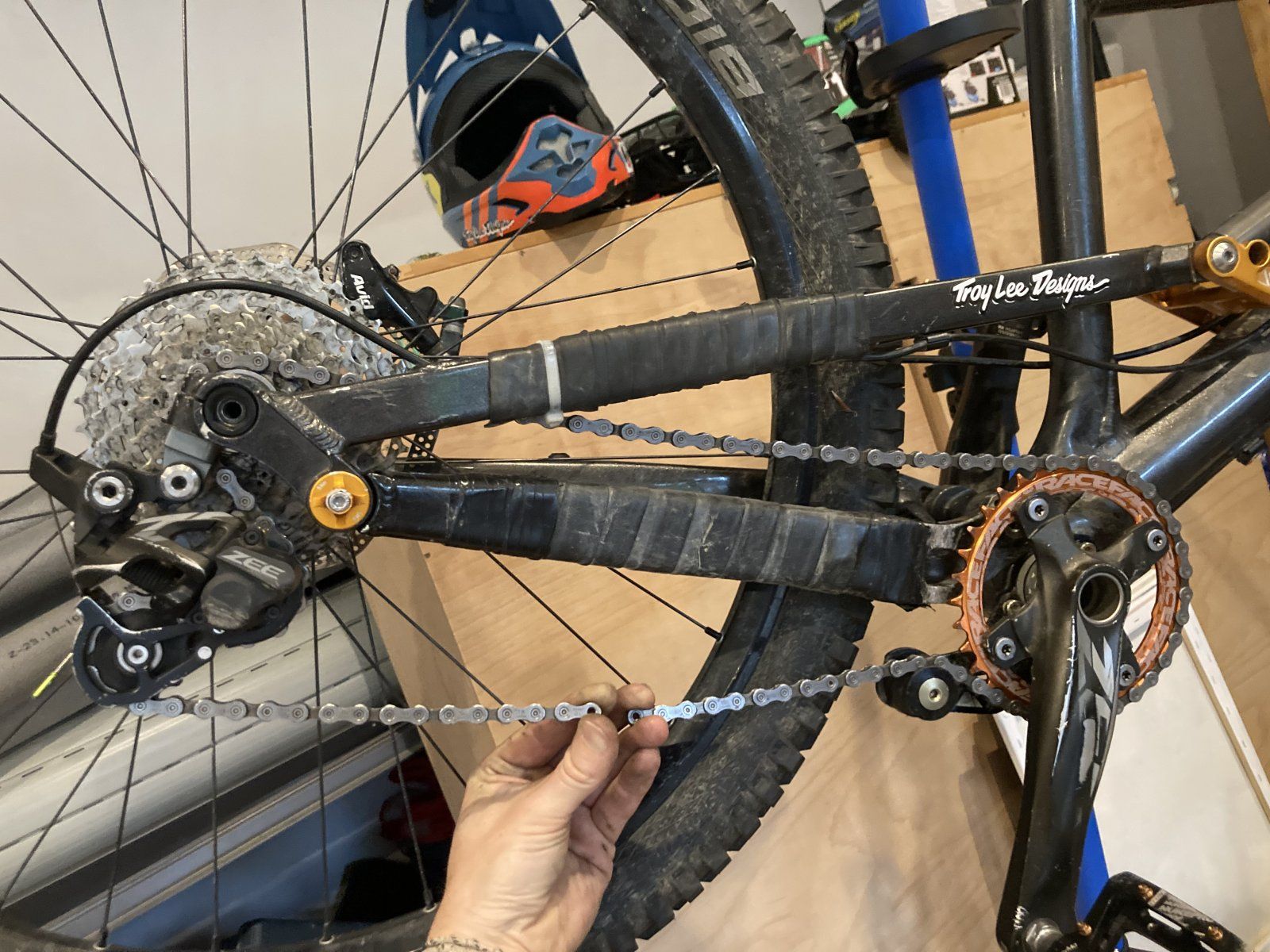 Da die Kette vorher ja immer vorne abgesprungen ist, mache ich den Umbau ja gerade um dies zu verhindern.