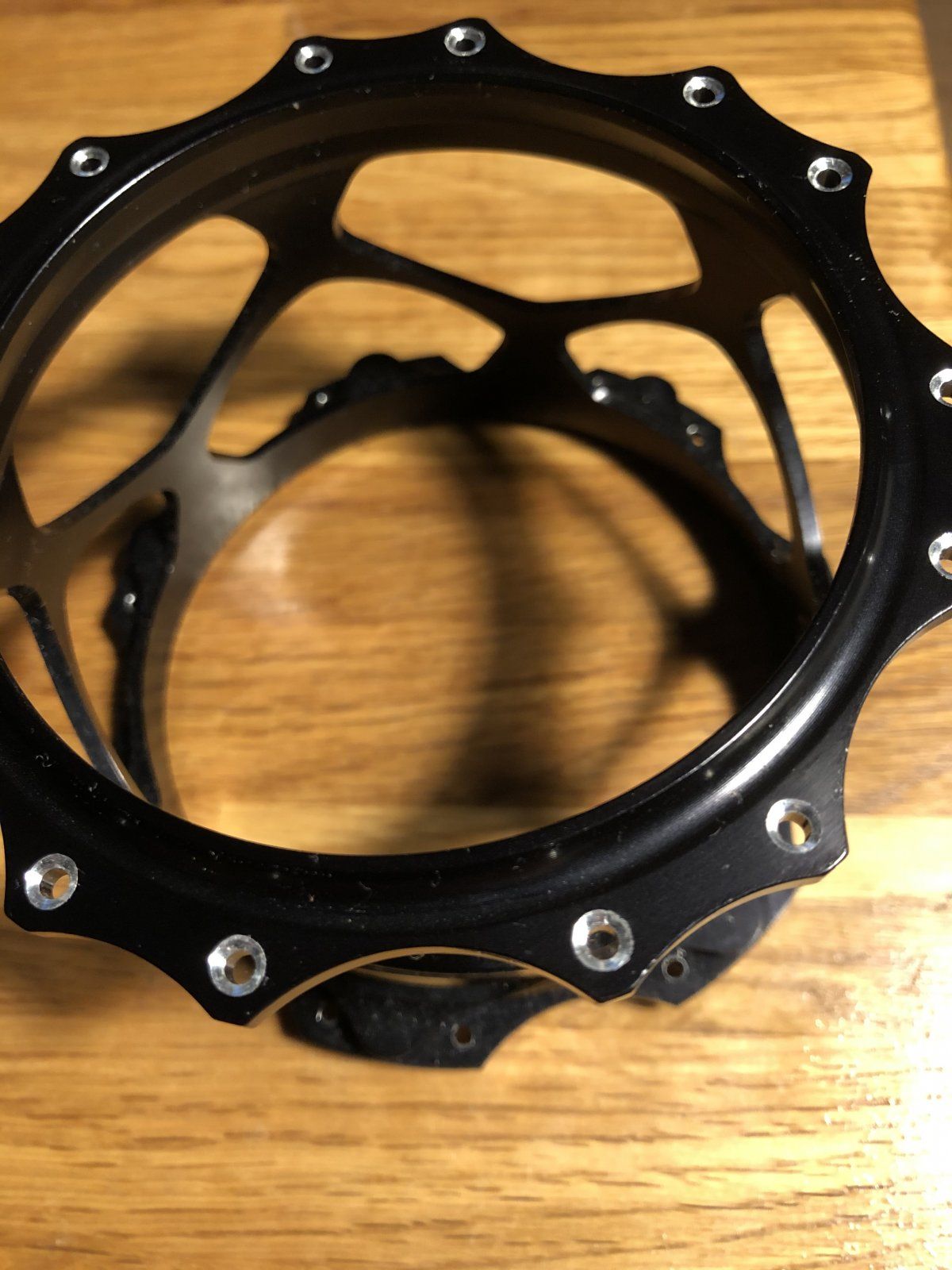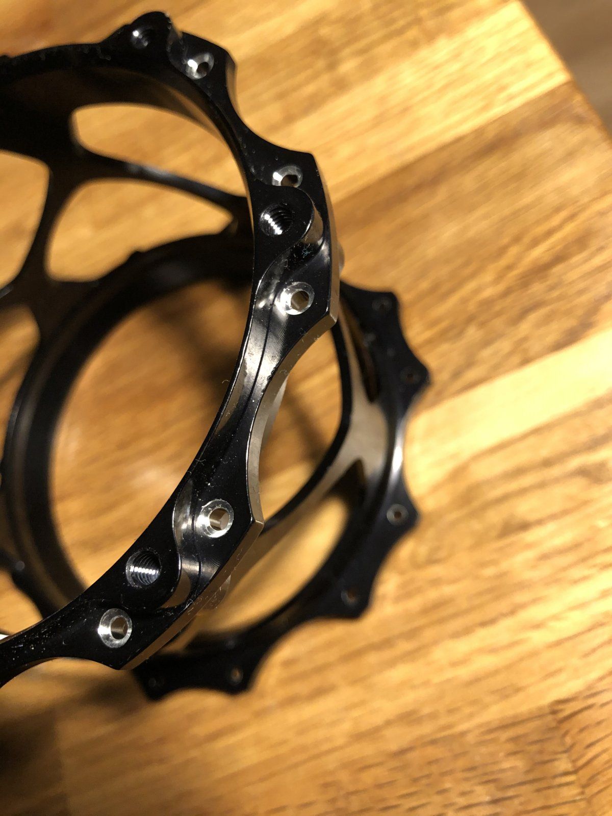 Allerdings ist nur auf der Flanschaussenseite einekonische Bohrung und auf derInnenseite nur eine Bohrung fuer eine 2mm Speiche.Ohne Konus. Ich dachte erst es sei ein Produktionsfehler, habe aber von Kindernay erfahren, dass es wohl so weniger Belastung auf die Speiche gibt. Ich habe noch einen extra "cage". Kann davon ein Bild machen wenn ich heute Abend nach Hause komme.