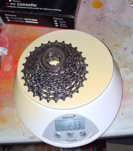An der Recon Kassette ist das kleinste Ritzel tauschbar. Bei Shimano sowieso alle bis zur Mitte. Also hab ich jetzt ein kleinstes goldenes Ritzel auf der Shimano-Kasstte. Wieder 3 Gramm gespart
