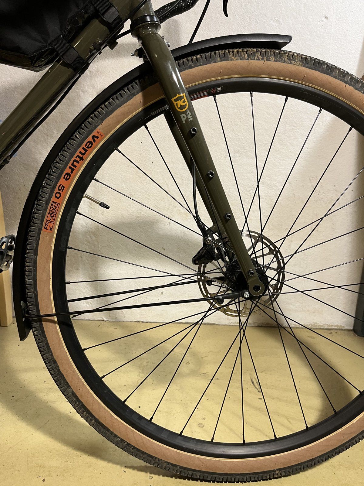 Bei mir steht die Fummelei am normalen Sutra 22 noch aus. Da passen die 45er WTB Riddler schon nicht mehr unter die langen Blümels Trekking.