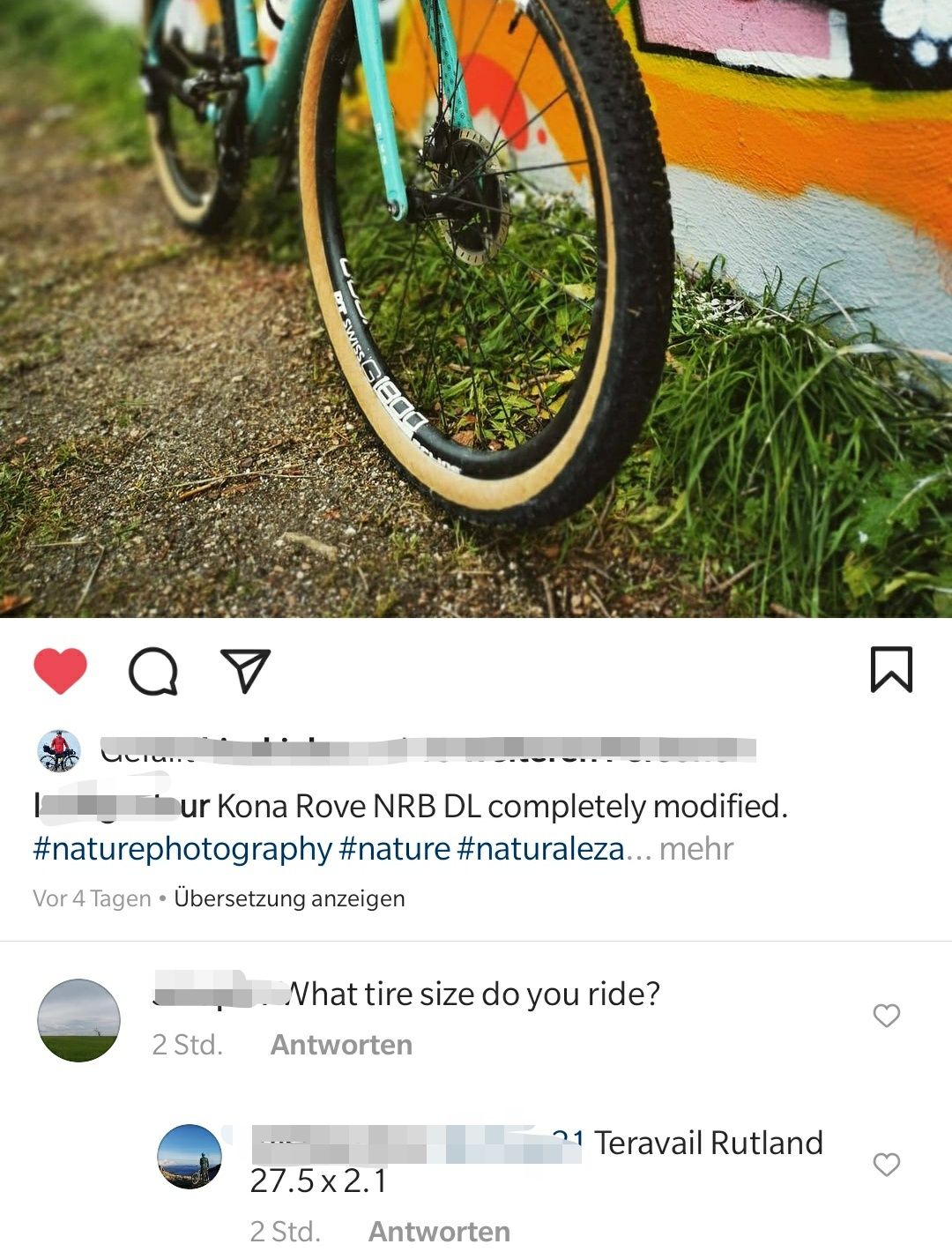 das 2017er Rove ST war am „sinnvollen“ Limit mit einem WTB Nano in 40mm (Felge hatte 20mm Maulweite).
