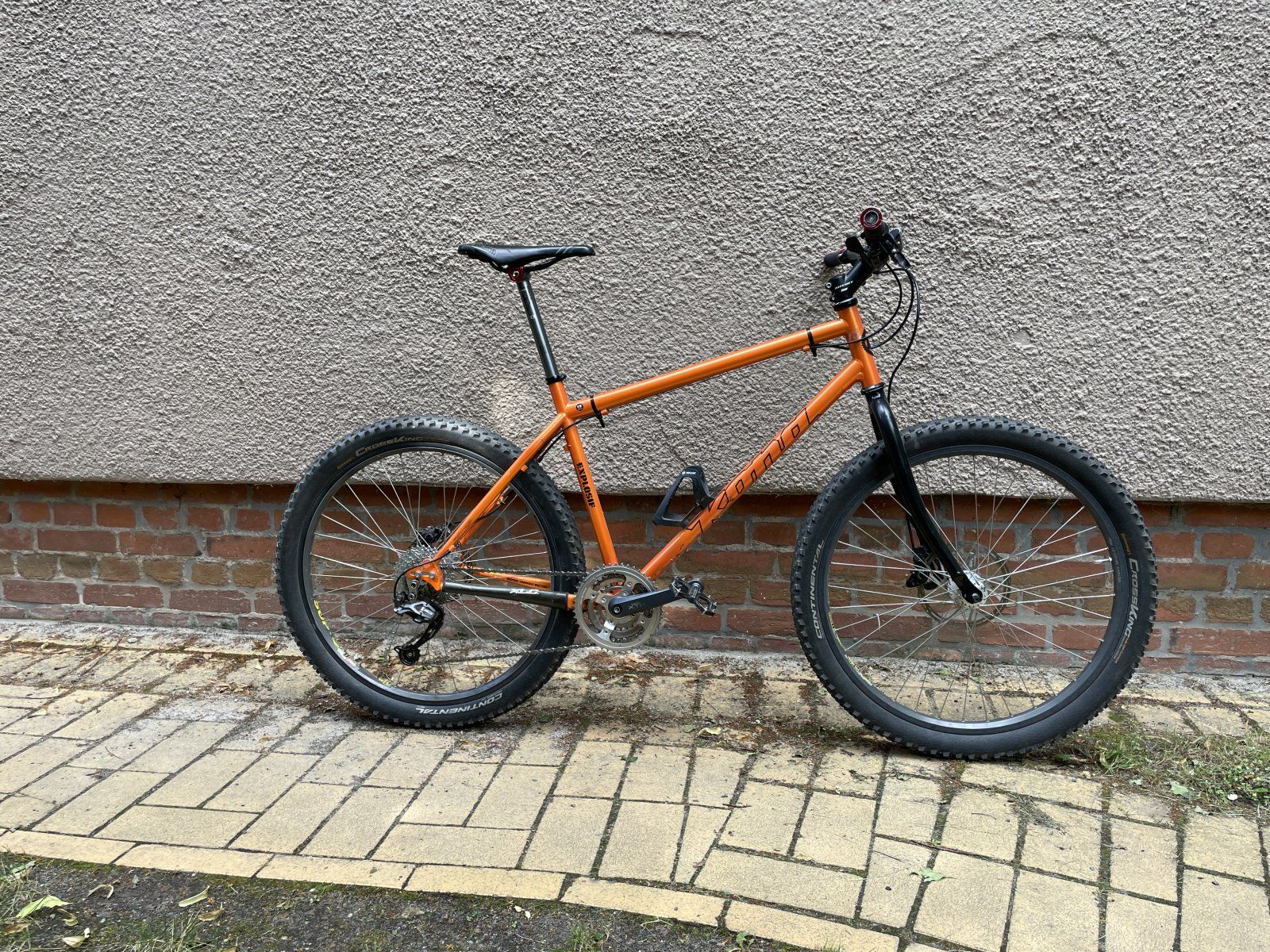 Es ist ein 26 Zoll Rahmen. Mit Single Speed Ausfallern.