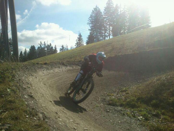 Dann erst einmal etwas mit mehr Platz gesucht, schön bergab Laubsurfen: