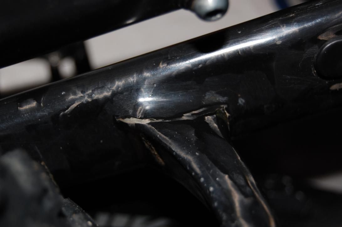 habe da einen bösen Verdacht. Und zwar fahre ich seit kurzem einen DH 920 '11 Rahmen... nun habe ich ihn mal richtig schön geputzt und mir das ding mal genau angesehen und dabei sind mir diese Stellen an der Verbinungsstrebe des Hinterbaus aufgefallen...