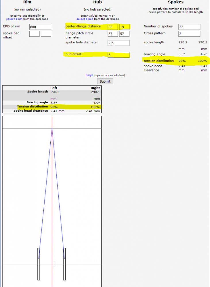 Die 4,5mm Asymmetrie der i35 Felgen machen es eben noch besser ... Aber die gemeinsamen 10,5mm sind immer noch nicht über den Mittelpunkt der Nabe hinaus. Ist also empfehlenswert asymmetrische Felgen zu verwenden. (WTB, Syntace etc ... Ach ne Syntace nicht. gibt ja keine QR Kappen mehr)