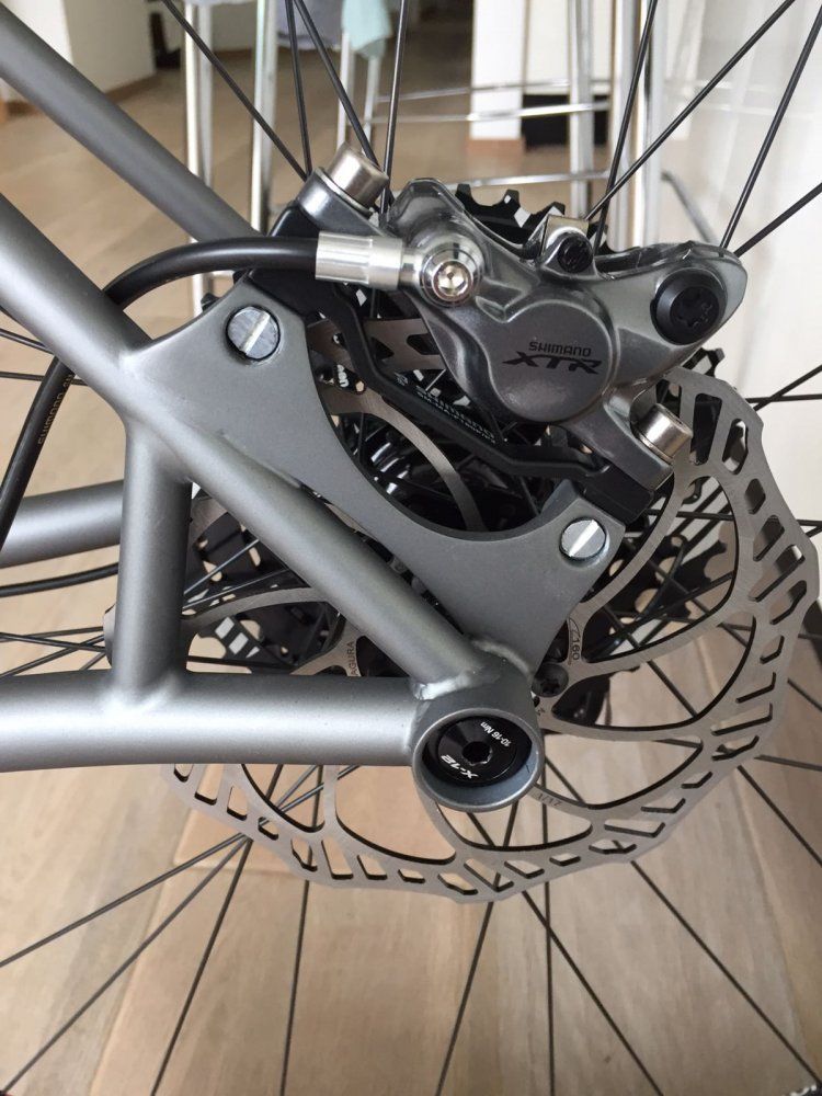 was mich mehr stört ist die bremssattelaufnahme hinten...da hat er immer eine fpr 140er scheiben dran...darum bei 160er scheiben dieser bremssatteladapter...und die tonnenmuttern musste ich auch noch bearbeiten, damit die passten...