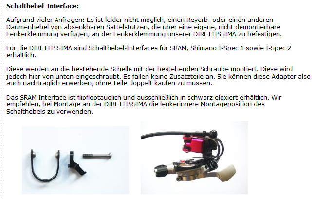 ein shifter mit schelle lässt sich ganz einfacher verkaufen...und so wie es unocz nich schreibt...positionsänderungen mit dem shifter und der bremse...